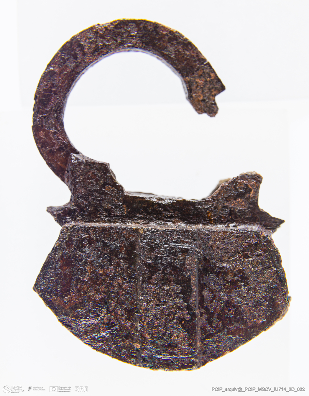 Matéria/Técnica: Ferro; Cronologia: Século XVII; Autoria: Desconhecida; Dimensões: Altura: 51mm; Largura: 37mm; Espessura: 13mm.