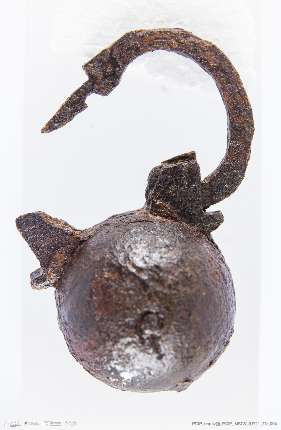 Matéria/Técnica: Ferro; Cronologia: Século XVII; Autoria: Desconhecida; Dimensões: Altura: 68mm; Largura: 46mm; Espessura: 34mm.