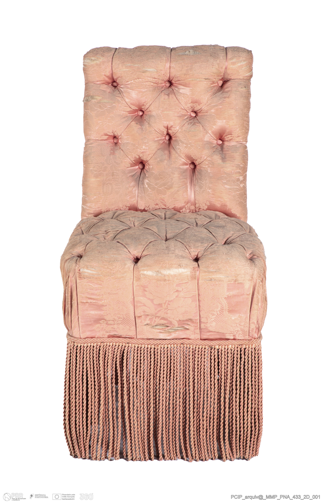 Matéria/Técnica: Madeira (?), damasco de seda; cordão de seda; Cronologia: 1852 - 1870; Autoria: Desconhecida; Dimensões (cm): Altura: 95,0; Largura: 51,0; Profundidade: 51,0.