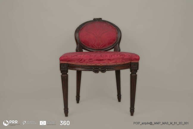 Matéria/Técnica: Madeira entalhada, escurecida e encerada; Cronologia: Século XVIII; Autoria: Desconhecida; Dimensões (cm): Altura: 70,5; Largura: 53; Comprimento: 53.