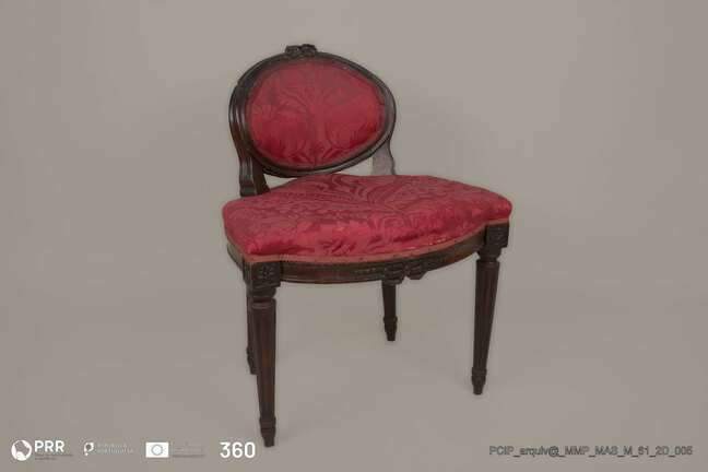Matéria/Técnica: Madeira entalhada, escurecida e encerada; Cronologia: Século XVIII; Autoria: Desconhecida; Dimensões (cm): Altura: 70,5; Largura: 53; Comprimento: 53.