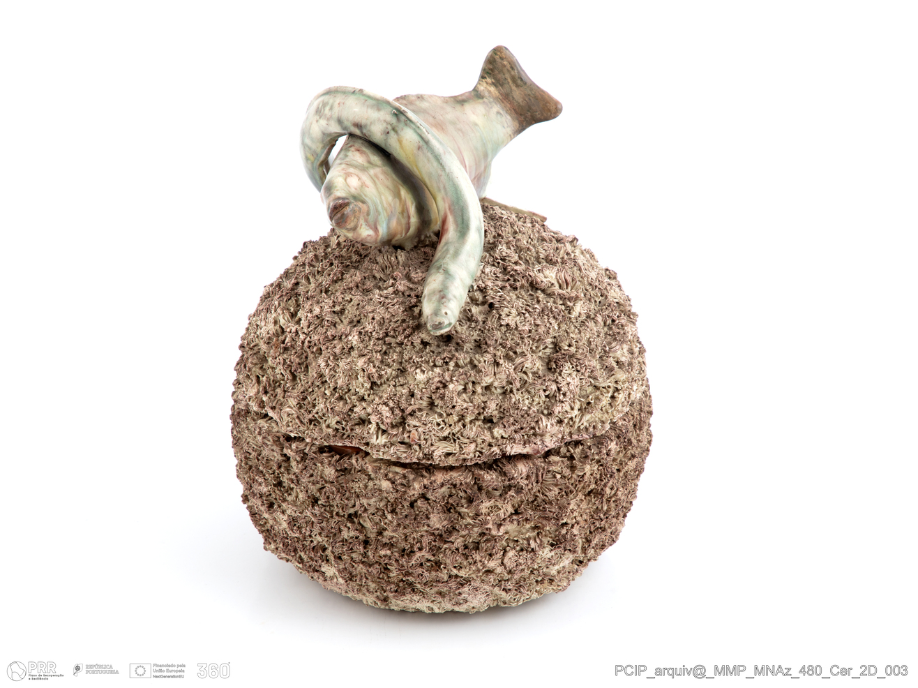 Matéria/ Técnica: Barro; Cronologia: 1890; Autoria: Bordalo Pinheiro, Rafael (Lisboa, 1846 - 1905); Dimensões (cm): Altura: 19cm; Diâmetro: 15,5cm.