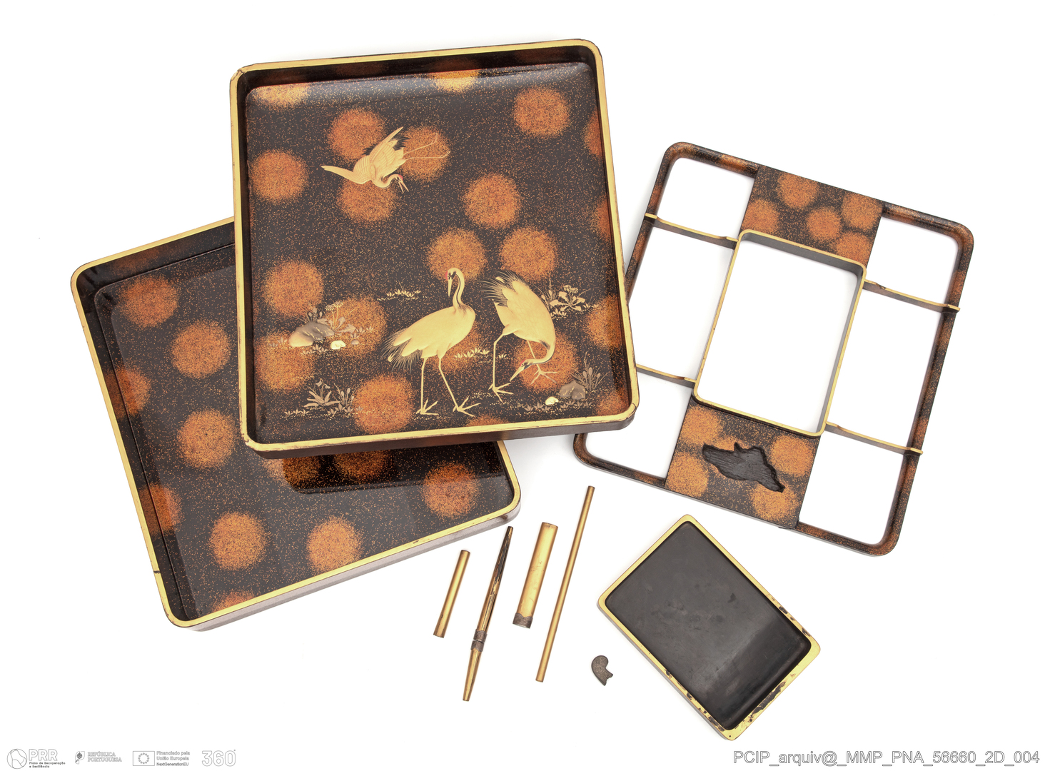 Matéria/Técnica: Madeira de (?); laca; Cronologia: Século XIX; Autoria: Desconhecida; Dimensões (cm): Altura: 50; Largura: 45; Profundidade: 45.