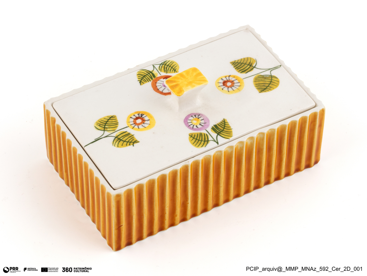 Matéria/Técnica: Faiança moldada e vidrada; Cronologia: Século XX; Autoria: Desconhecida; Dimensões: Altura: 7cm x Largura: 8,9cm x Comprimento: 15cm.