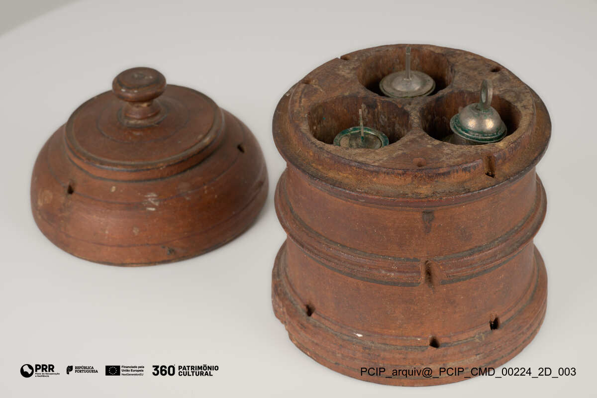 Matéria/Técnica: Desconhecida; Cronologia: XVII; Autoria: Desconhecida; Dimensões: Altura: 10,4 cm; Diâmetro: 10,4 cm.