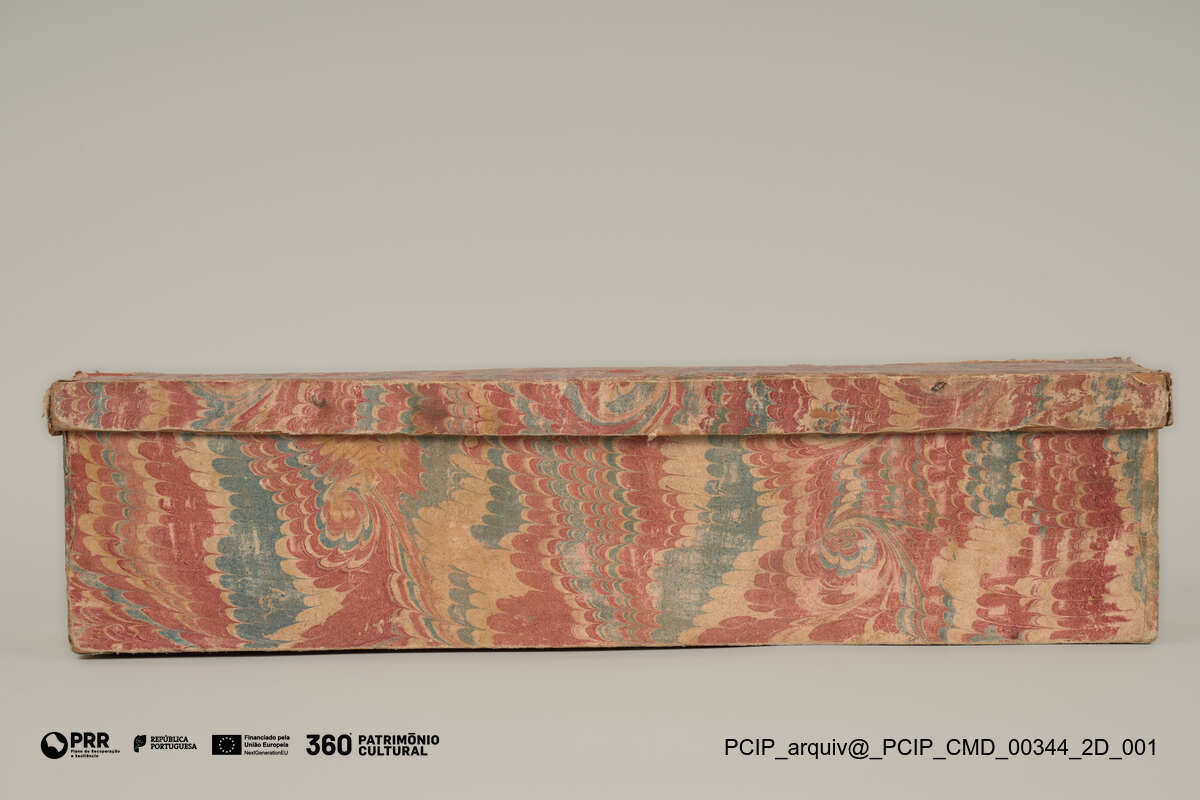 Matéria/Técnica: Madeira, papel e lacre vermelho.; Cronologia: XVIII; Autoria: Desconhecida; Dimensões: Altura: 10,5 cm; Largura: 43,5 cm; Profundidade: 11 cm.