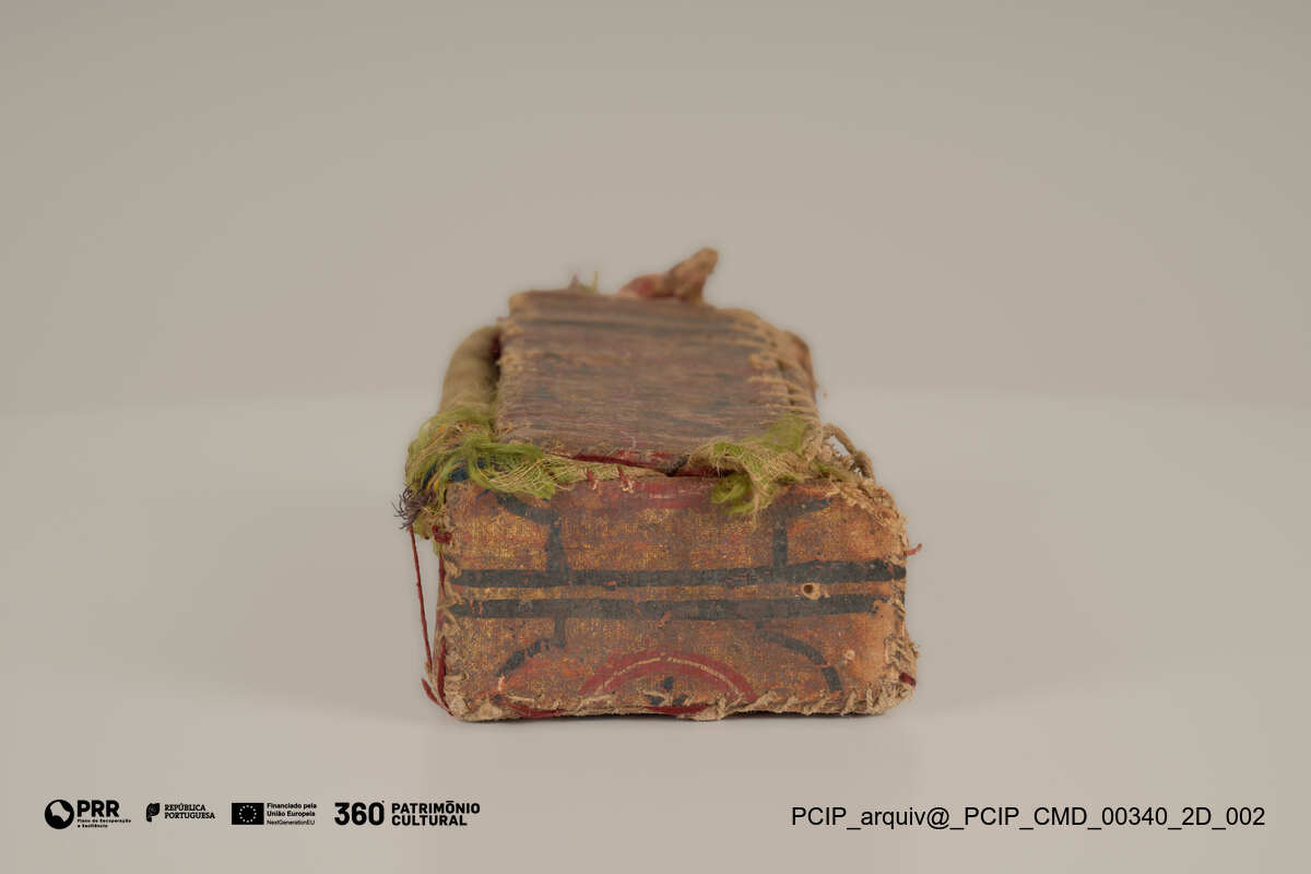 Matéria/Técnica: Madeira ?, têxtil.; Cronologia: XVI - XVII; Autoria: Desconhecida; Dimensões: Altura: 4,5 cm; Largura: 17 cm; Profundidade: 7 cm.