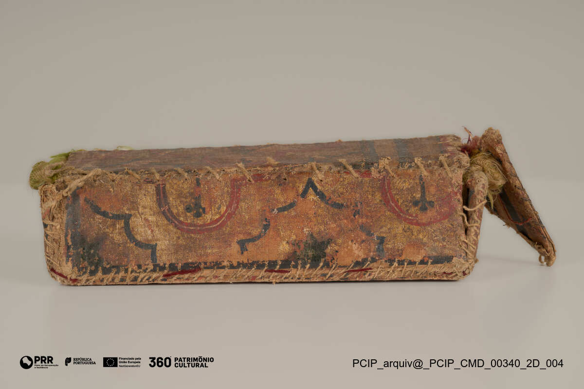 Matéria/Técnica: Madeira ?, têxtil.; Cronologia: XVI - XVII; Autoria: Desconhecida; Dimensões: Altura: 4,5 cm; Largura: 17 cm; Profundidade: 7 cm.