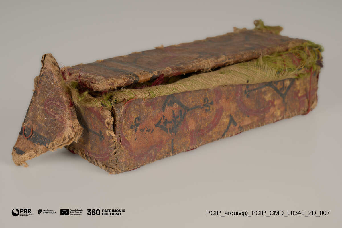 Matéria/Técnica: Madeira ?, têxtil.; Cronologia: XVI - XVII; Autoria: Desconhecida; Dimensões: Altura: 4,5 cm; Largura: 17 cm; Profundidade: 7 cm.