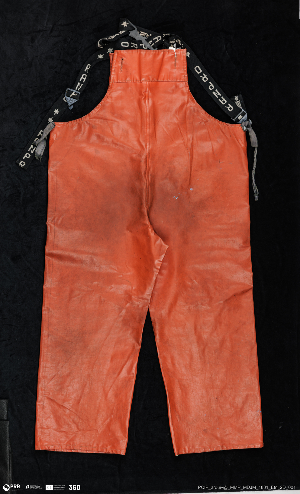 Matéria/Técnica: Tecido de algodão oleado; Cronologia: Séc. XX; Autoria: Desconhecida; Dimensões: Altura: 119 cm x Largura: 60 cm.