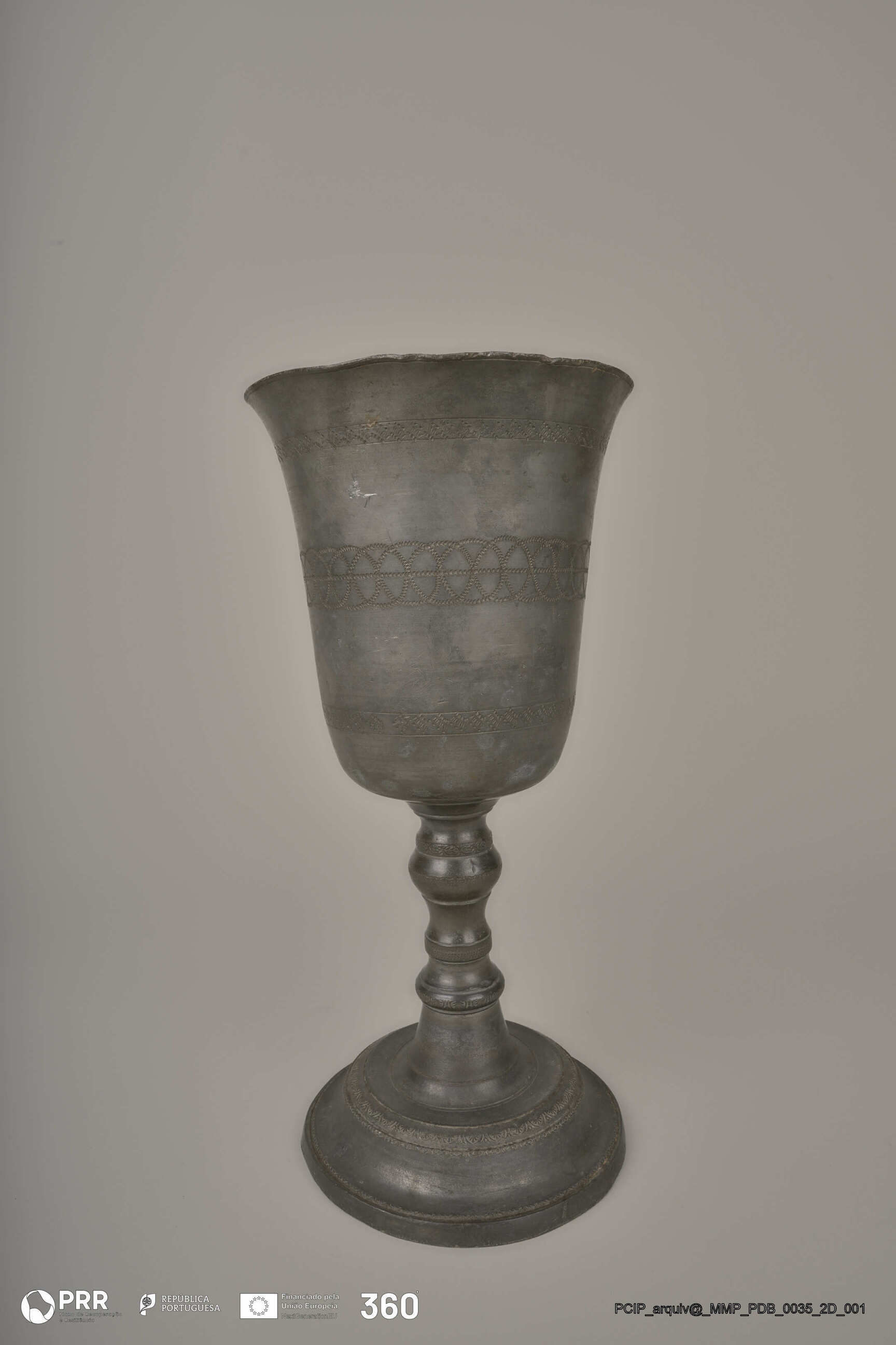 Matéria/Técnica: Desconhecida; Cronologia: Século XVII; Autoria: Desconhecida; Dimensões (cm): Altura: 28,5; Diâmetro: Boca - 13,5 Base - 12,5.