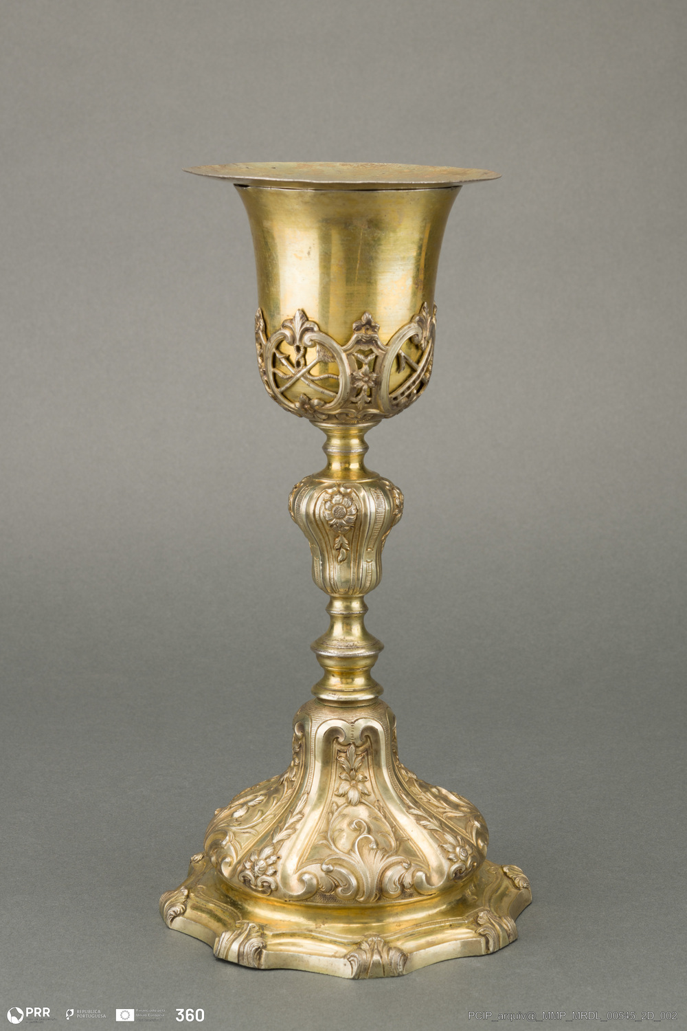 Matéria/Técnica: Prata Dourada; Cronologia: Desconhecida; Autoria: Desconhecida; Dimensões: Altura: 29,00 cm; Diâmetro: 14,20 cm; Peso: 881,00 gr.
