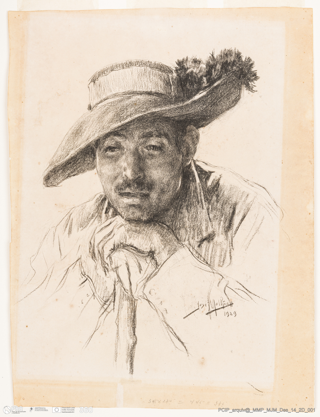 Matéria/Técnica: Carvão sobre papel; Cronologia: 1929; Autoria: José Malhoa; Dimensões: 48 x 37 cm.