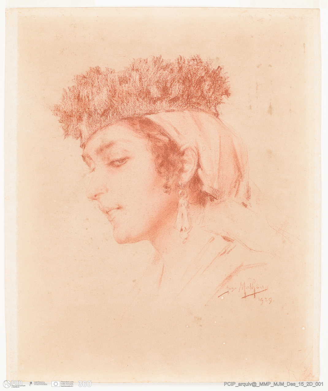Matéria/Técnica: Sanguínea; Cronologia: 1929; Autoria: José Malhoa; Dimensões: 43 x 36 cm.
