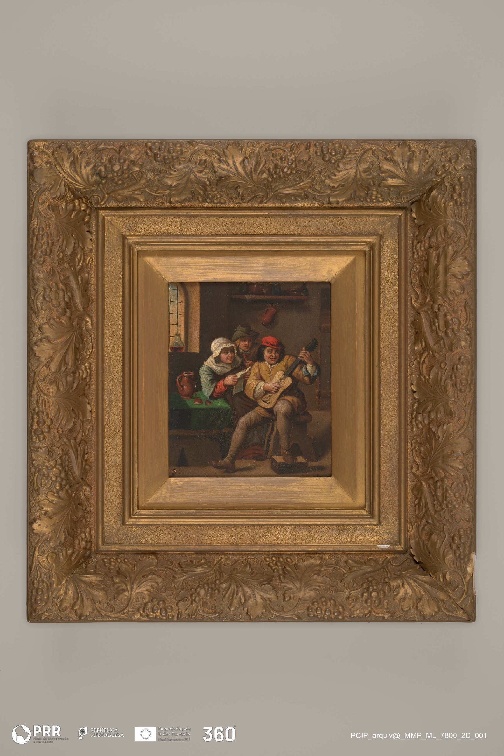 Camponeses compondo música num interior