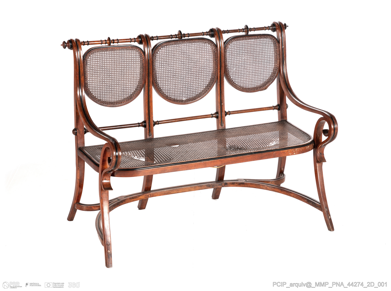 Matéria/Técnica: Madeira; vime; Cronologia: Século XIX; Autoria: Desconhecida; Dimensões (cm): Altura: 69; Largura: 94; Comprimento: 47.