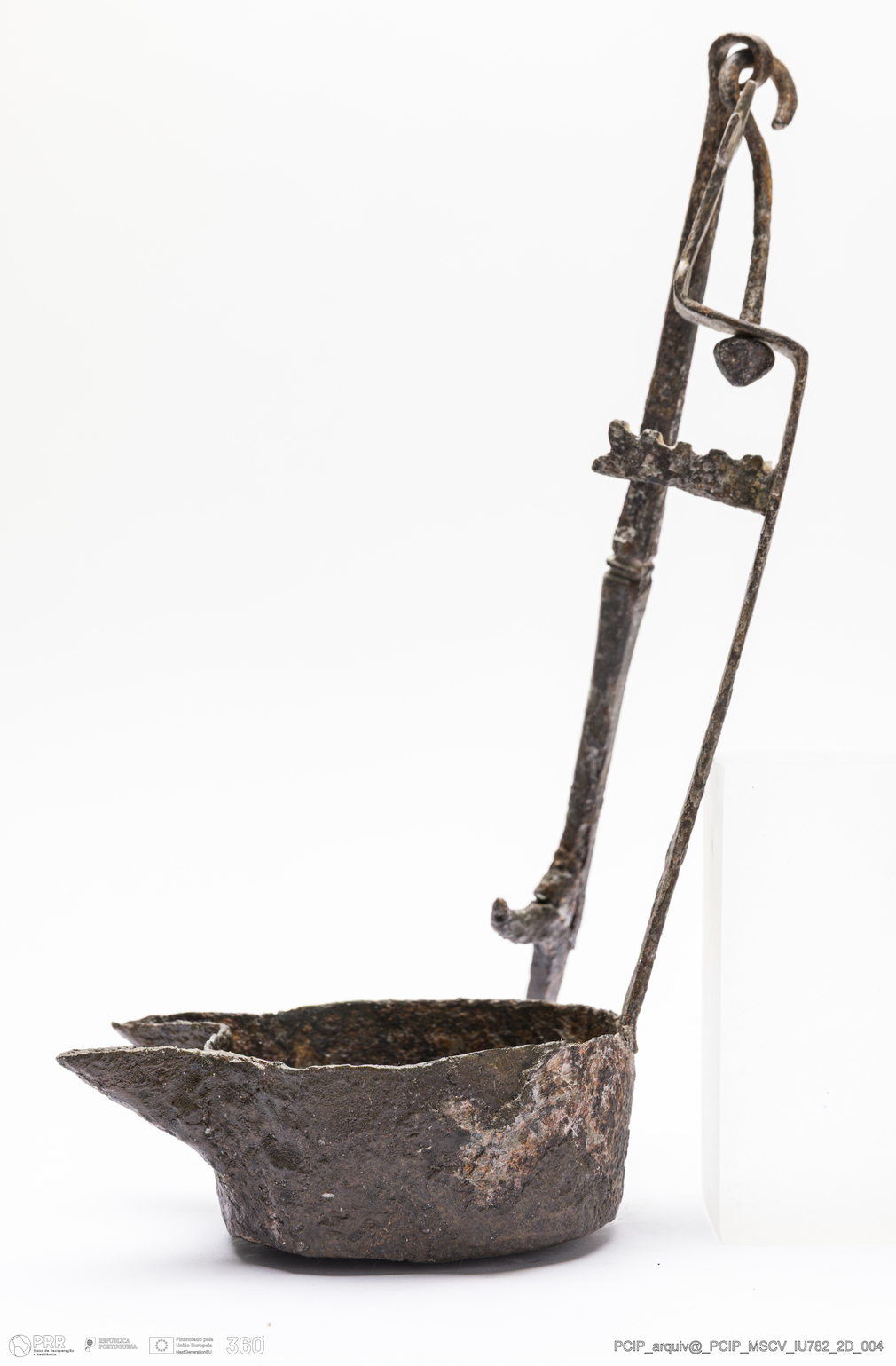 Matéria/Técnica: Metal ferro (?); Cronologia: Século XVII; Autoria: Desconhecida; Dimensões: Altura: 260mm; Diâmetro: 95mm; Altura: 30mm.