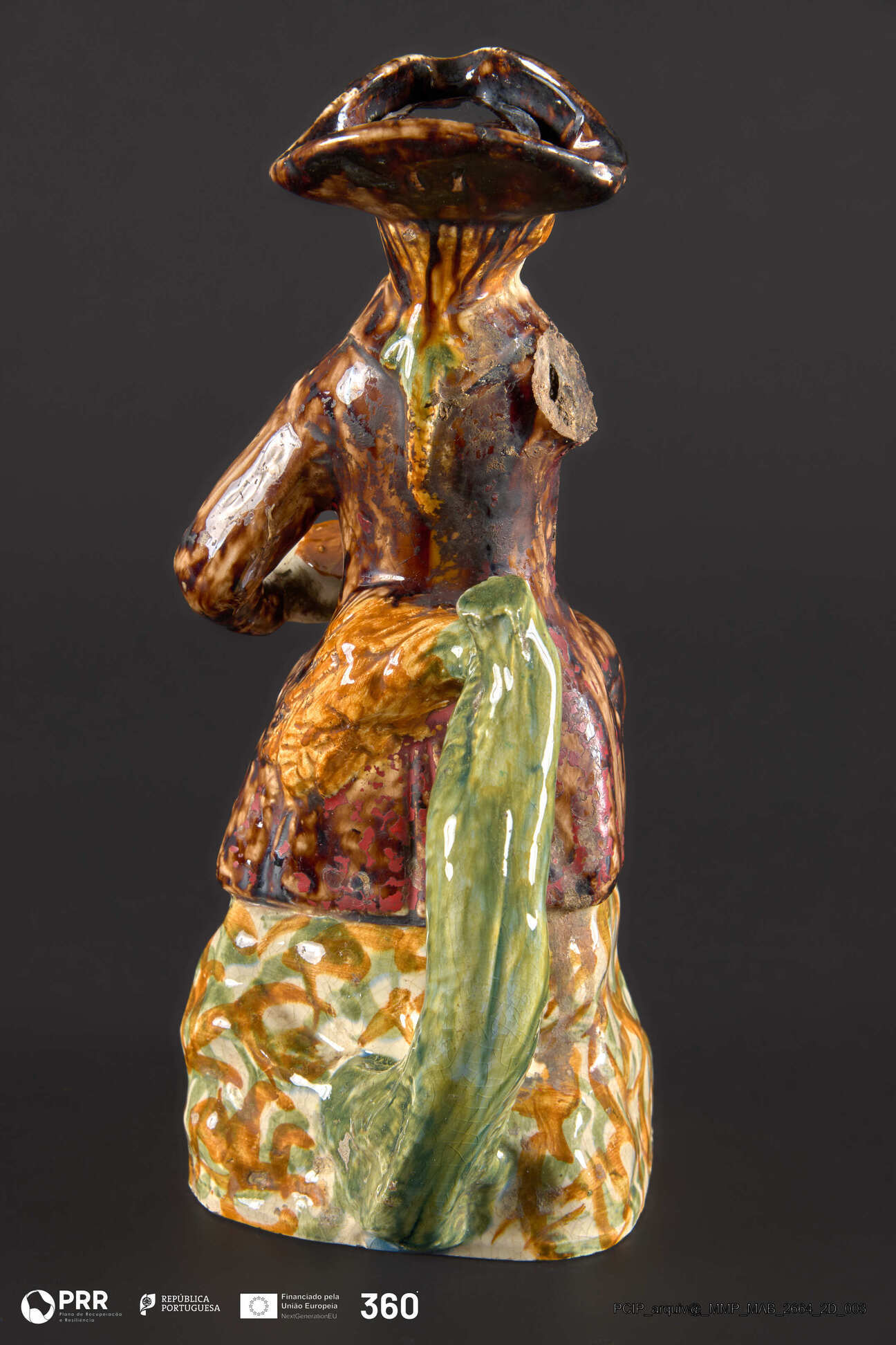 Matéria/Técnica: Peça moldada , vidrada e policroma; Cronologia: Desconhecida; Autoria: Desconhecida; Dimensões: Desconhecidas.