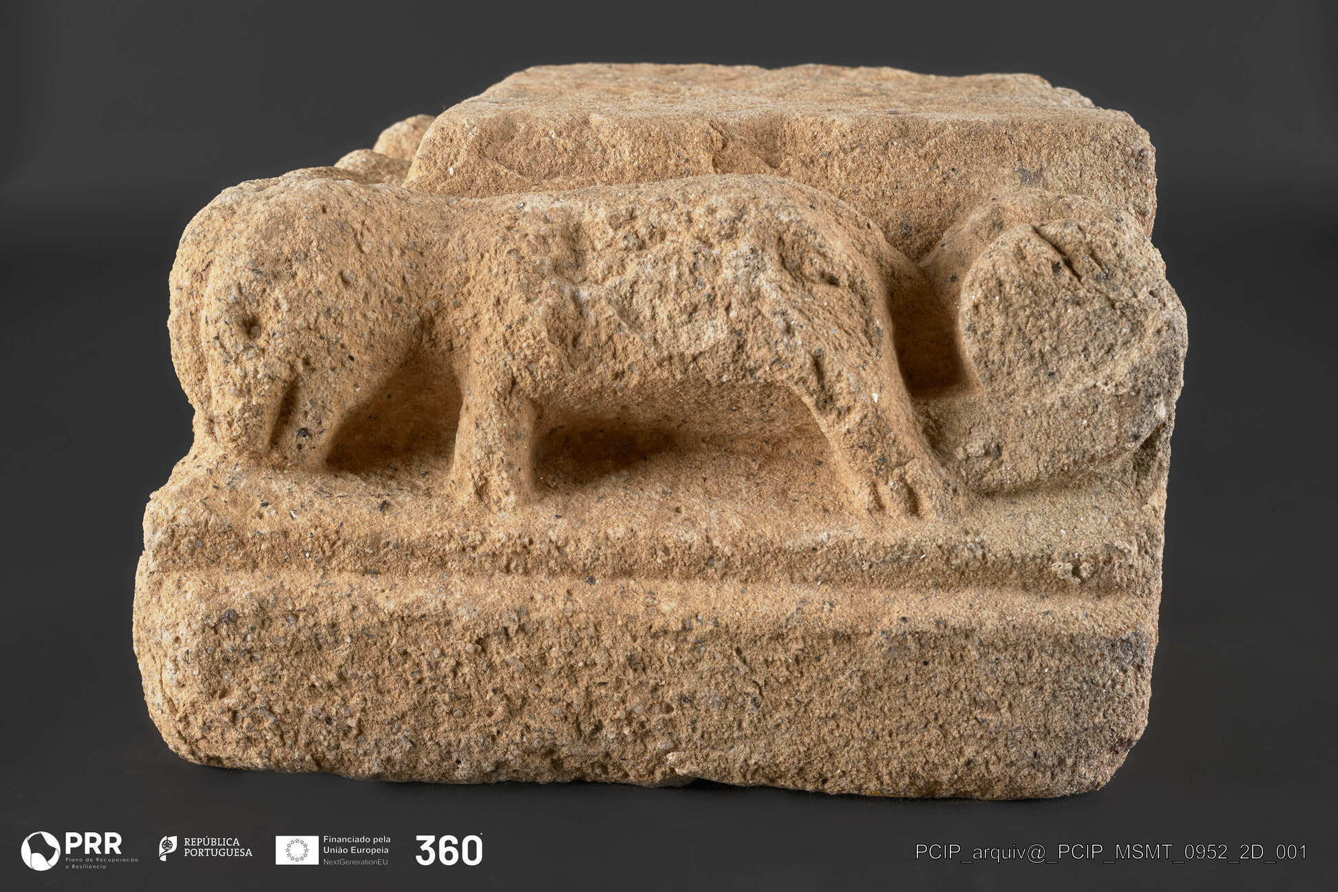 Matéria/Técnica: Granito / Cantaria; Cronologia: Séc. XII/XIII; Autoria: Desconhecido; Dimensões (cm): 20 x 39 x 34.