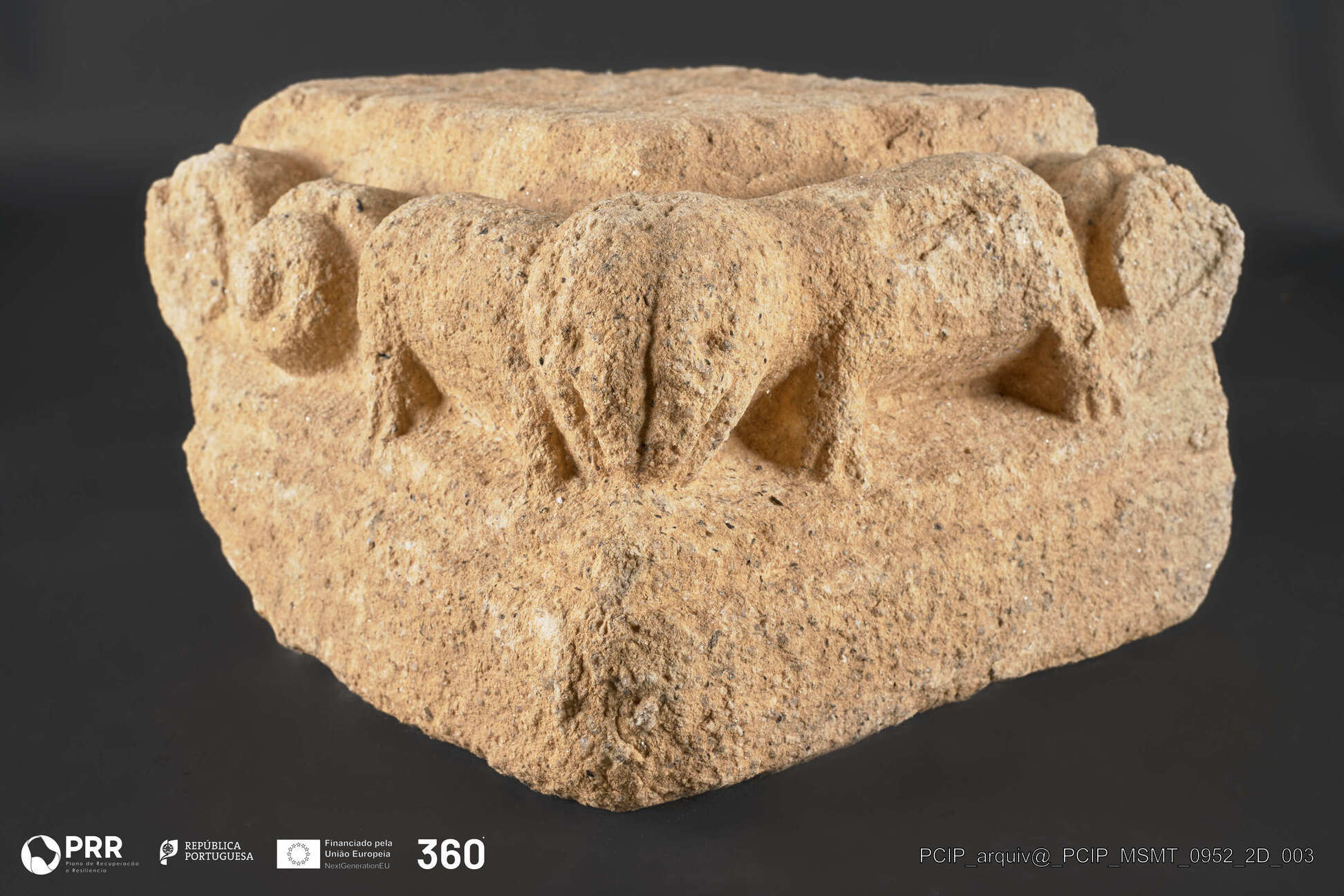 Matéria/Técnica: Granito / Cantaria; Cronologia: Séc. XII/XIII; Autoria: Desconhecido; Dimensões (cm): 20 x 39 x 34.