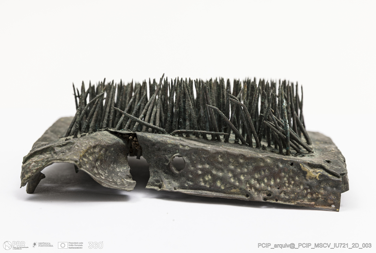 Matéria/Técnica: Madeira e Metal; Cronologia: Século XVII; Autoria: Desconhecida; Dimensões: Comprimento: 128mm; Largura: 99mm; Espessura: 33mm.