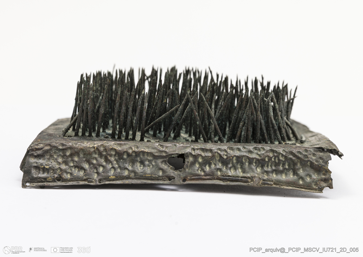 Matéria/Técnica: Madeira e Metal; Cronologia: Século XVII; Autoria: Desconhecida; Dimensões: Comprimento: 128mm; Largura: 99mm; Espessura: 33mm.