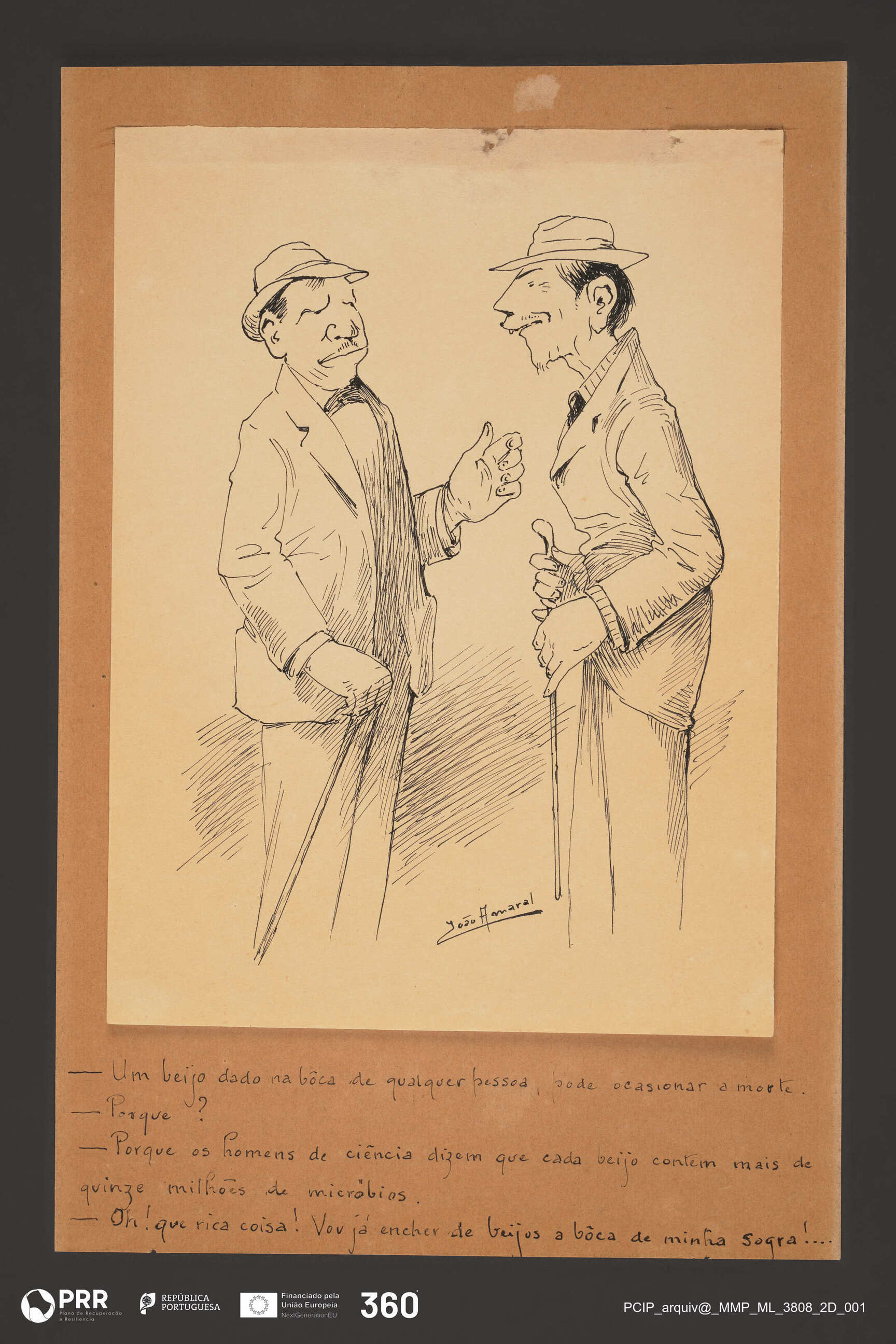 Matéria/Técnica: Desenho à pena; Cronologia: Século XX; Autoria: Amaral, João (1874 - 1955); Dimensões (cm): Altura: 23 (desenho), 30,5 (suporte) x Largura: 17 (desenho), 20 (suporte).