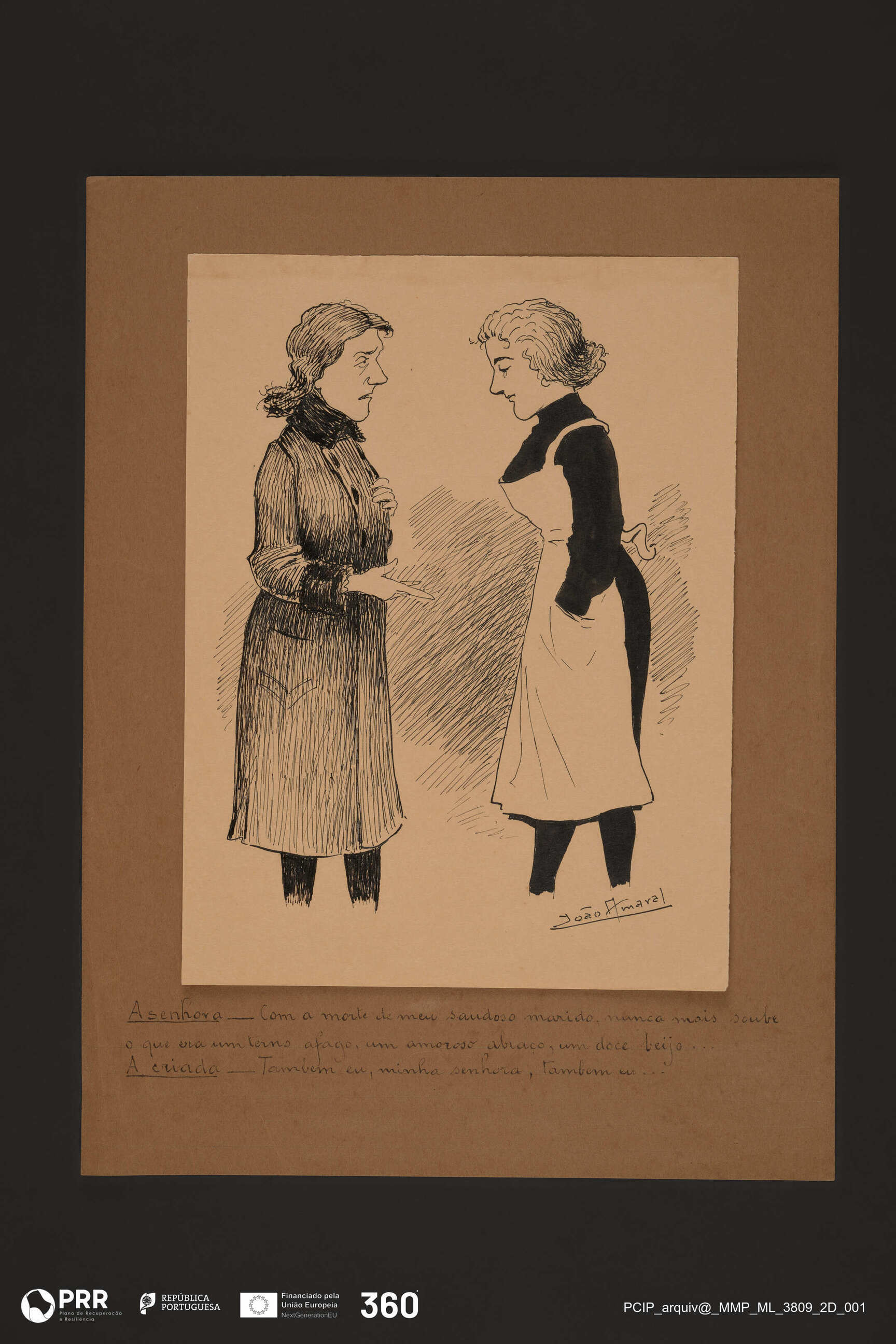 Matéria/Técnica: Desenho; Cronologia: Século XX; Autoria: Amaral, João (1874 - 1955); Dimensões (cm): Altura: 22 (desenho), 30 (suporte) x Largura: 16,5 8desenho), 22,5 (suporte).