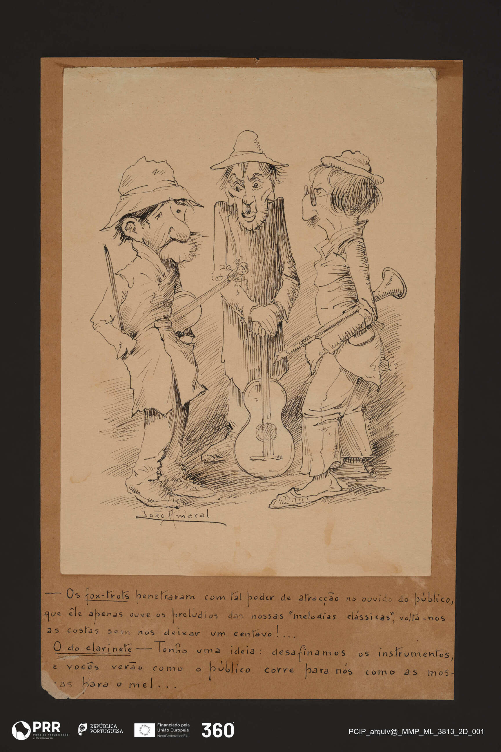 Matéria/Técnica: Desenho à pena.; Cronologia: Século XX; Autoria: Amaral, João (1874 - 1955); Dimensões (cm): Altura: 23,2 (desenho), 29,5 (suporte) x Largura: 17 (desenho), 19 (suporte).