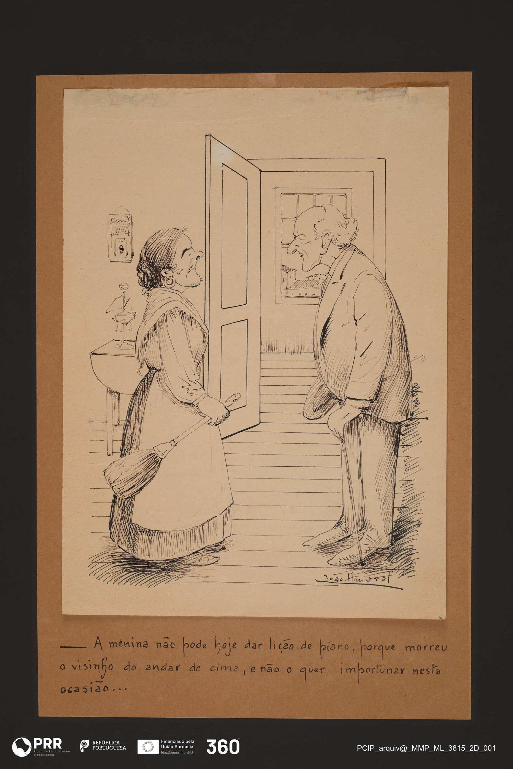 Matéria/Técnica: Desenho à pena; Cronologia: Século XX; Autoria: Amaral, João (1874 - 1955); Dimensões (cm): Altura: 23,1 (desenho), 28,5 (suporte) x Largura: 16,8 (desenho), 19 (suporte).