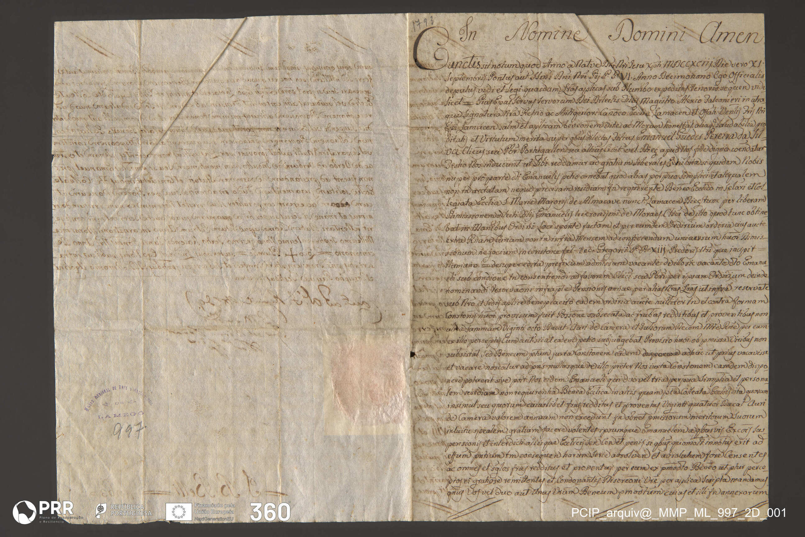 Matéria/Técnica: Escrita à pena em letra caligráfica; Cronologia: 1793; Autoria: Desconhecida; Dimensões (cm): Altura: 27,2 x Largura: 38,5.