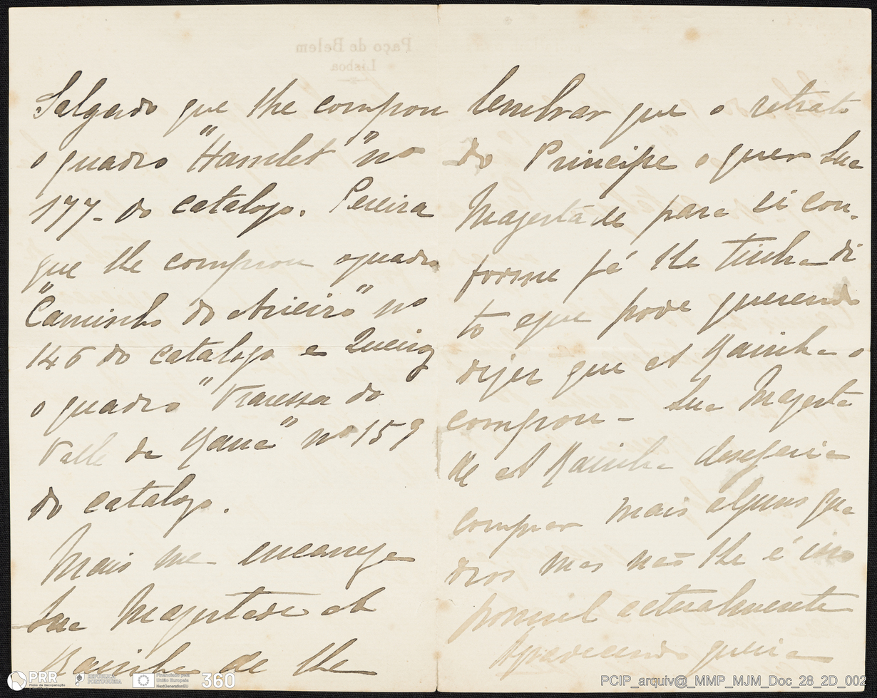 Documento simples. MJM_Doc_28_2D_002 - Carta do Paço de Belém para José Malhoa