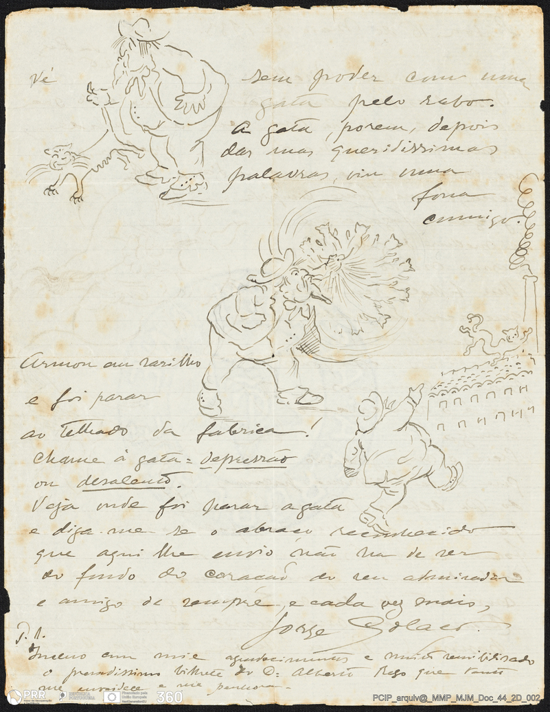 Documento simples. MJM_Doc_44_2D_002 - Carta manuscrita e ilustrada por Jorge Colaço dirigida a José Malhoa