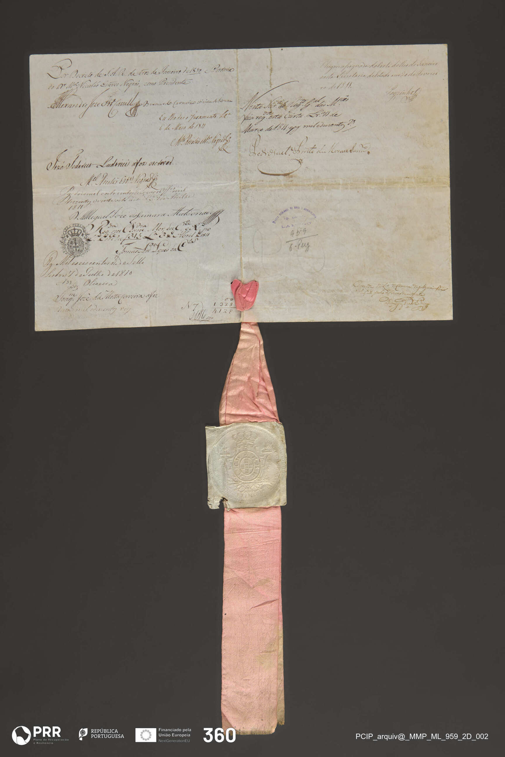 Matéria/Técnica: Escrito à pena em letra caligráfica moderna; Cronologia: 1810; Autoria: Desconhecida; Dimensões (cm): Altura: 23,5 x Largura: 36.