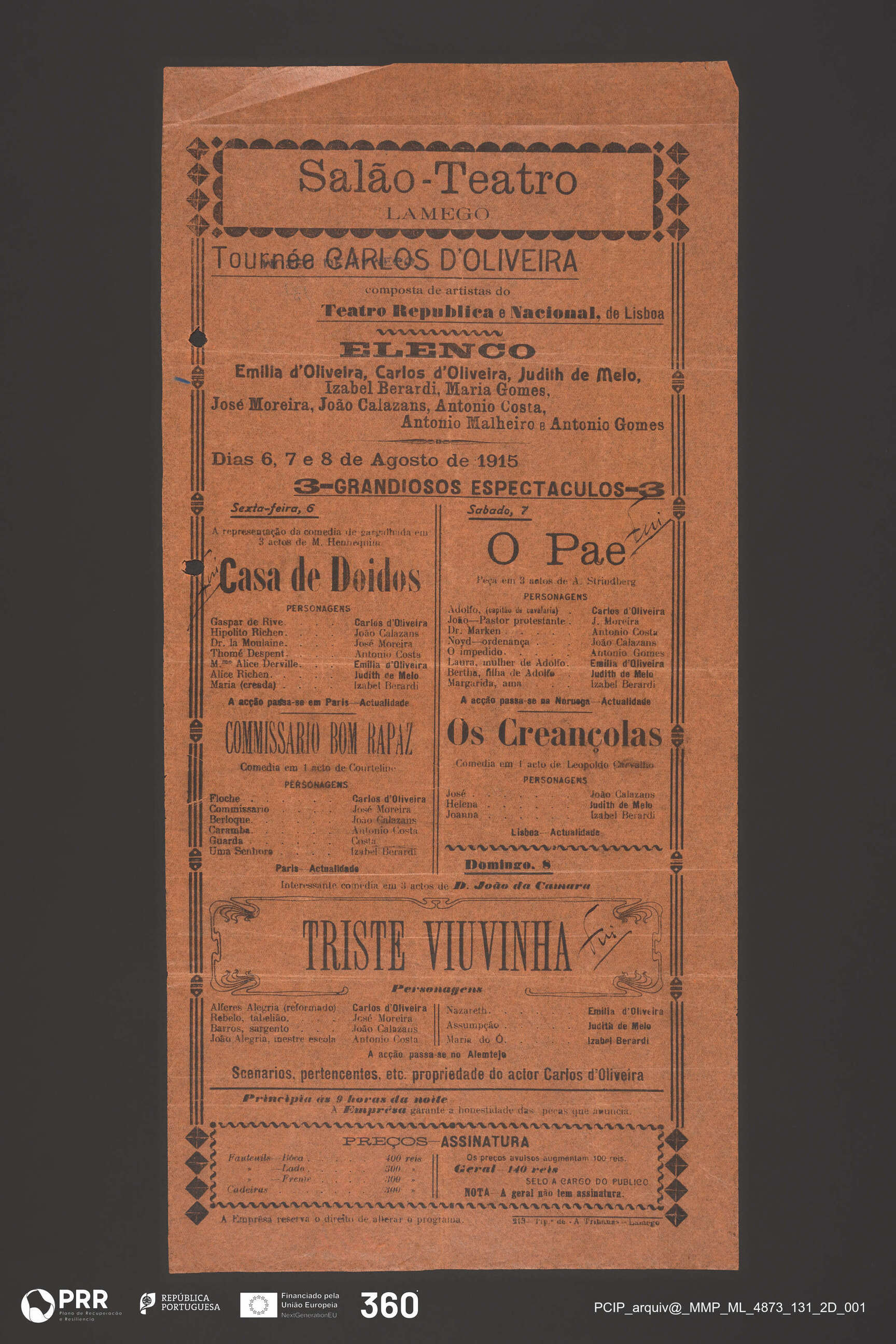 Casa de Doidos; Commissario Bom Rapaz; O Pae; Os Creançolas; Triste Viuvinha
