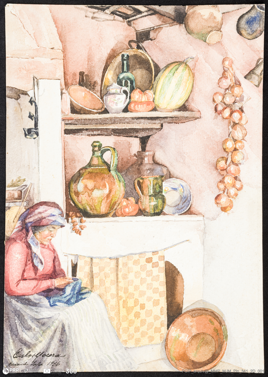 Matéria/Técnica: Aguarela; Cronologia: 1936; Autoria: Carlos Moura (1892- ); Dimensões: 33 x 23 cm.