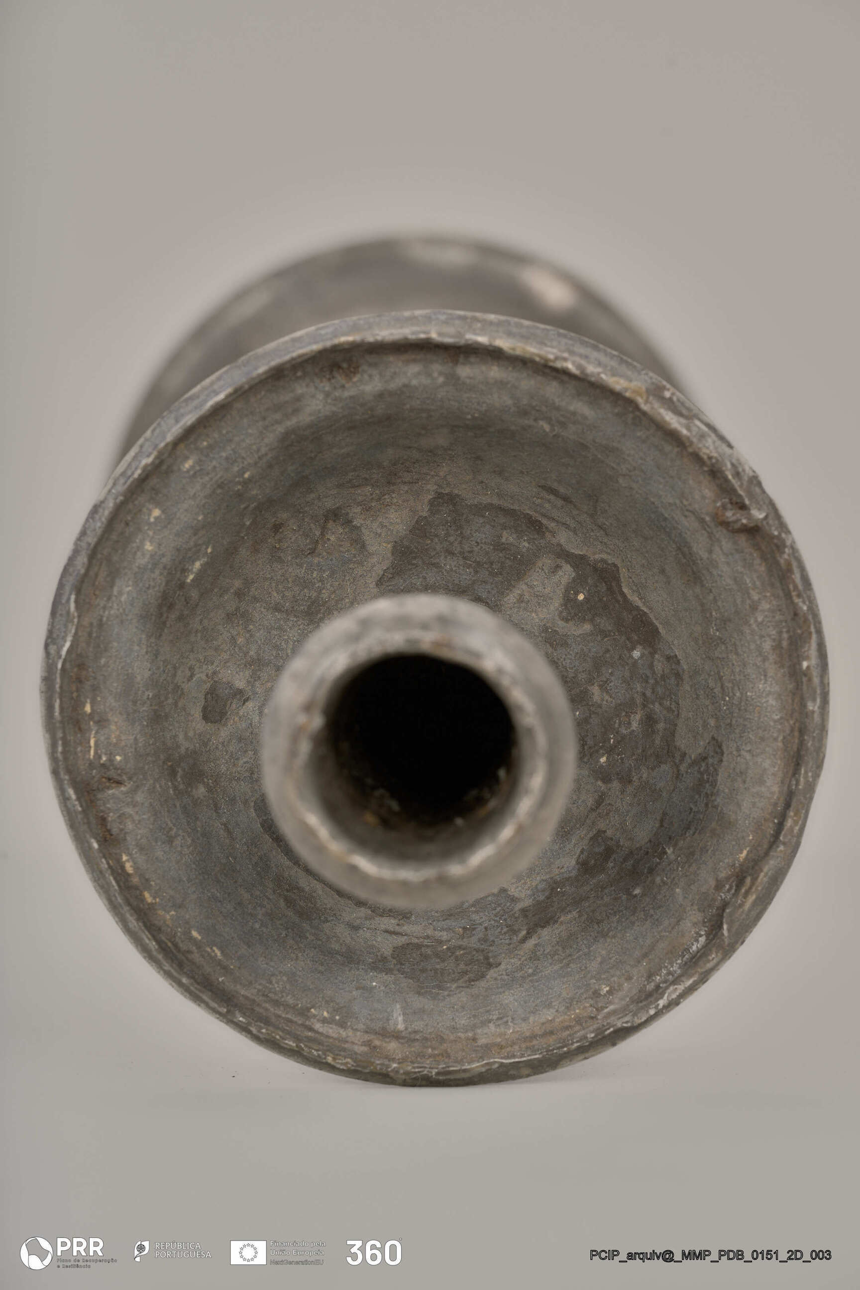 Matéria/Técnica: Desconhecida; Cronologia: Século XVII; Autoria: Desconhecida; Dimensões (cm): Altura: 42; Diâmetro: Fundo - 13,6.