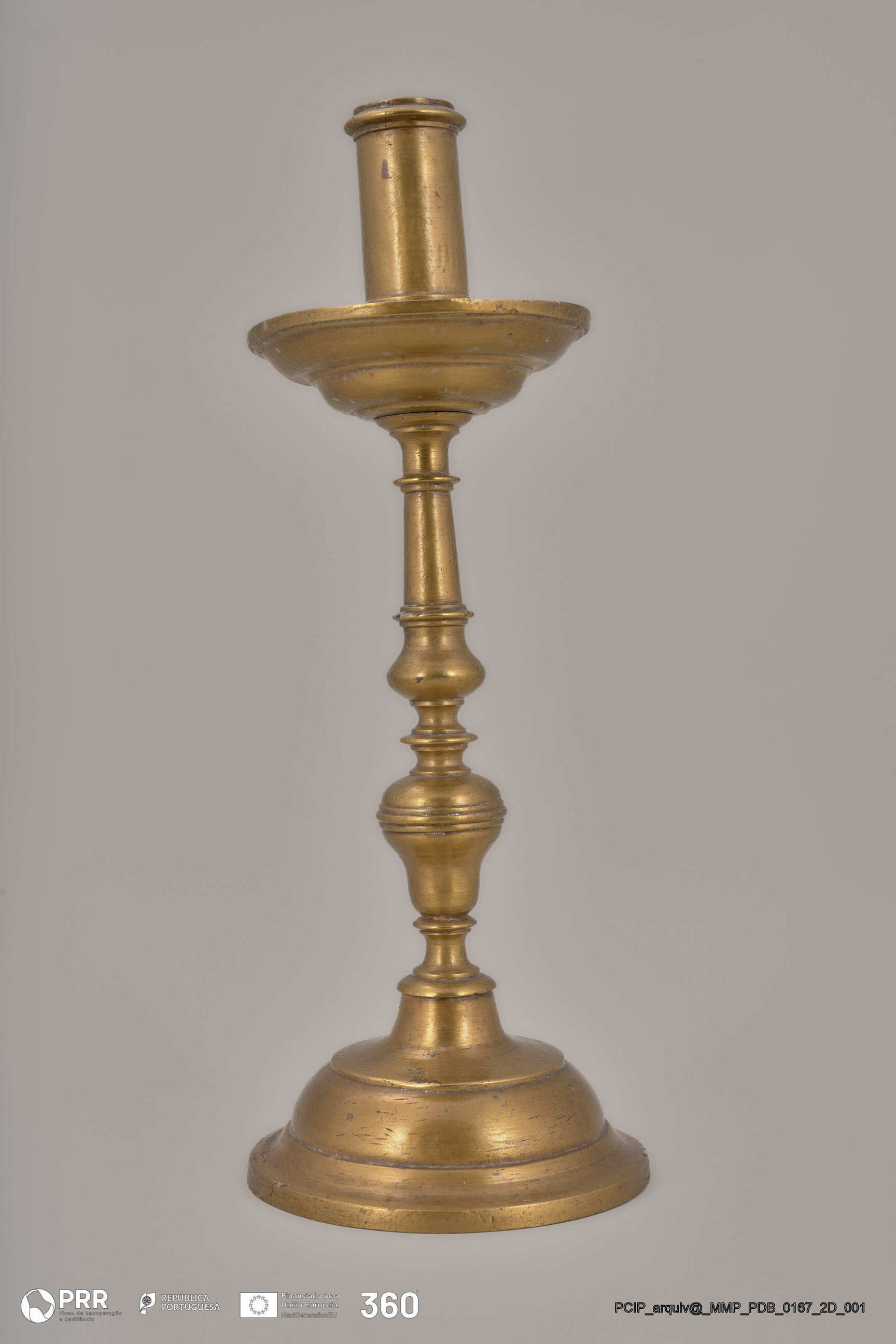 Matéria/Técnica: Desconhecida; Cronologia: Século XVIII; Autoria: Desconhecida; Dimensões (cm): Altura: 33,5; Diâmetro: Base - 12,7 Vela - 2,3.