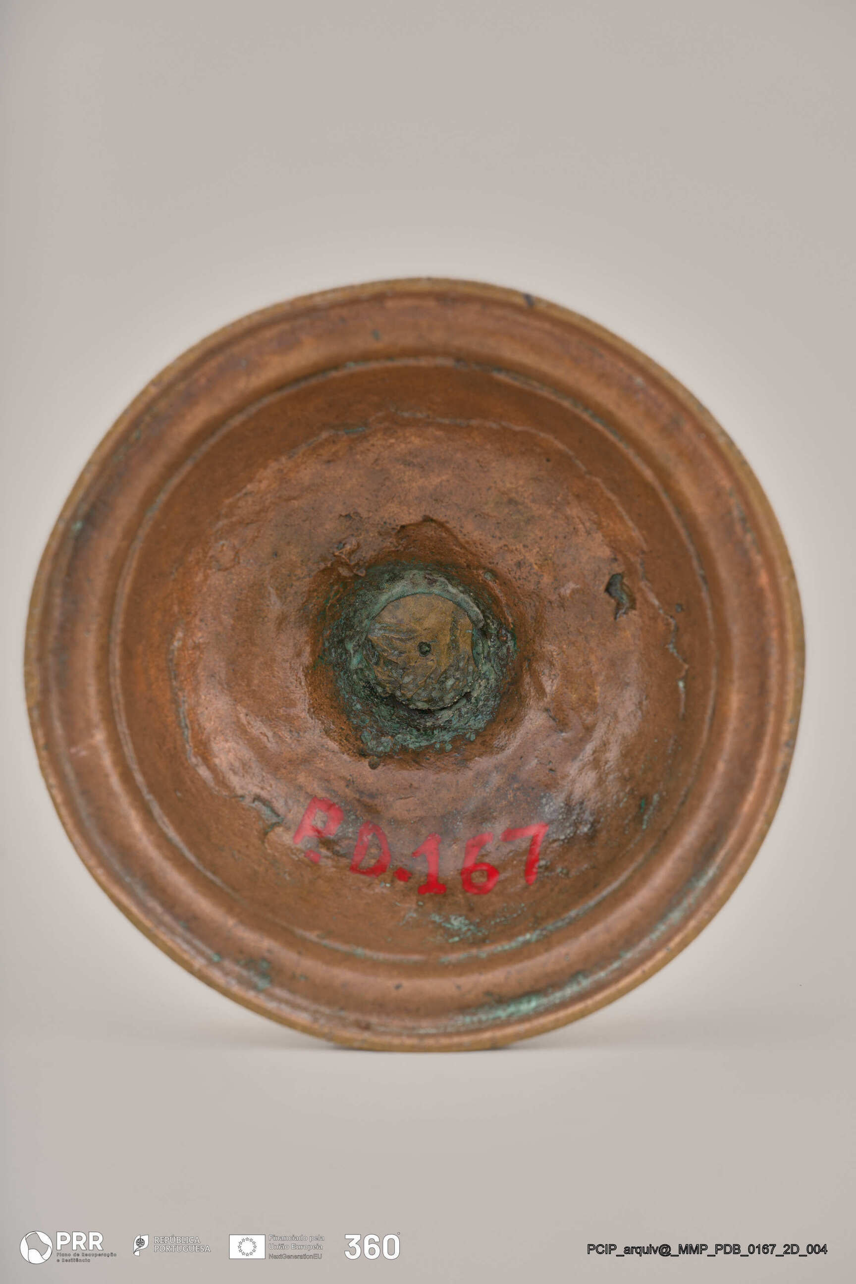 Matéria/Técnica: Desconhecida; Cronologia: Século XVIII; Autoria: Desconhecida; Dimensões (cm): Altura: 33,5; Diâmetro: Base - 12,7 Vela - 2,3.