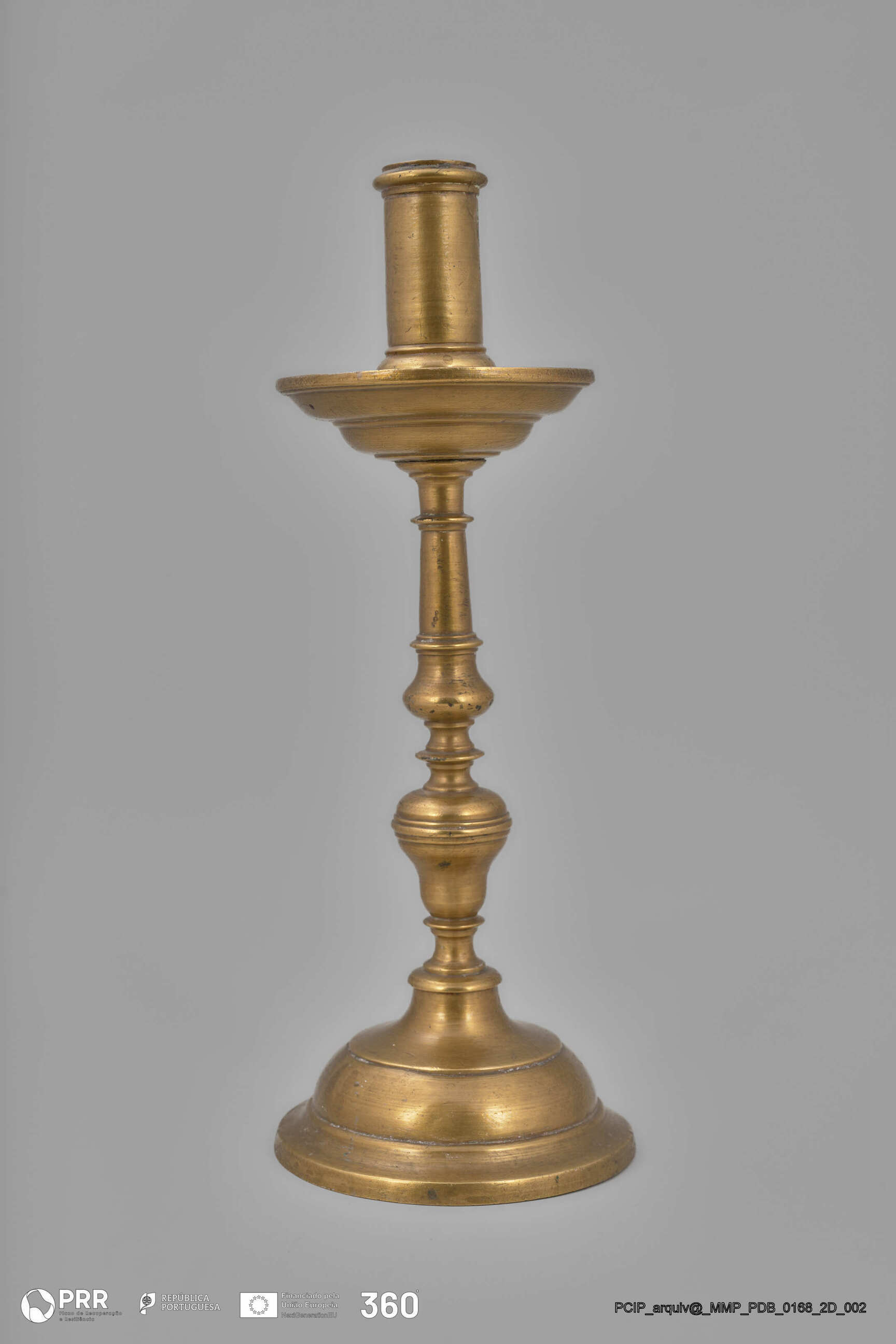 Matéria/Técnica: Desconhecida; Cronologia: Século XVIII; Autoria: Desconhecida; Dimensões (cm): Altura: 33,5; Diâmetro: Base - 12,7 Vela - 2,3.