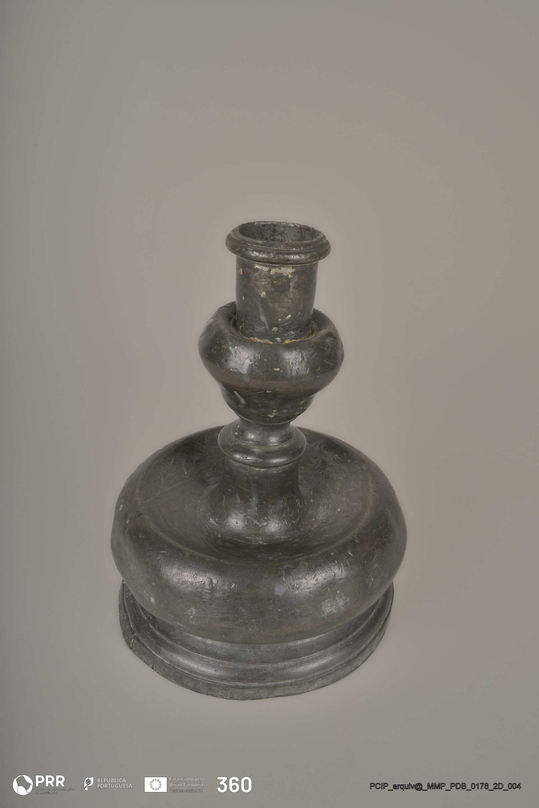 Matéria/Técnica: Desconhecida; Cronologia: Século XVII; Autoria: Desconhecida; Dimensões (cm): Altura: 16,5; Diâmetro: Vela - 2,8 Base - 12,4.