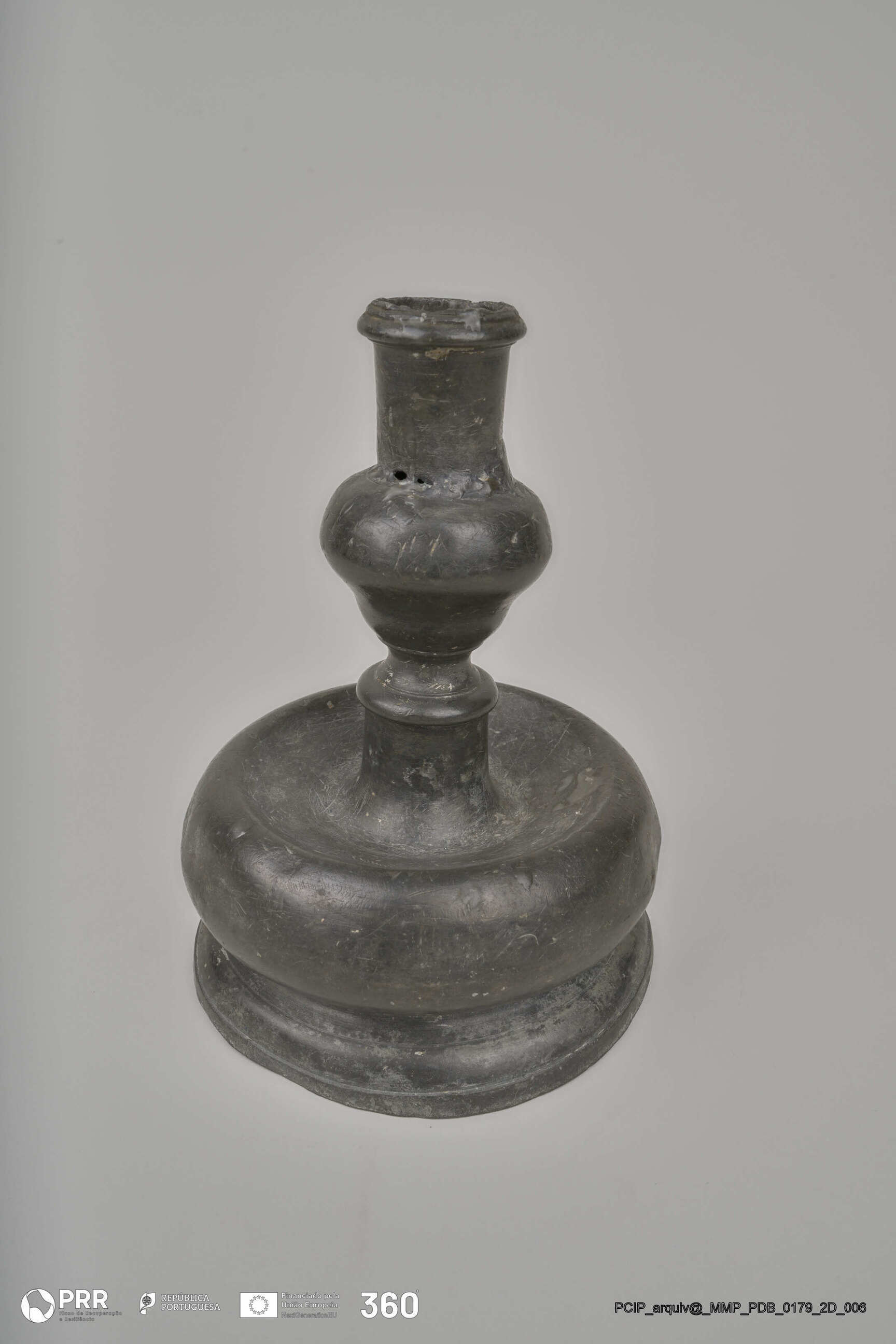 Matéria/Técnica: Desconhecida; Cronologia: Século XVII; Autoria: Desconhecida; Dimensões (cm): Altura: 17,5; Diâmetro: Vela - 2,8 Base - 12,4.
