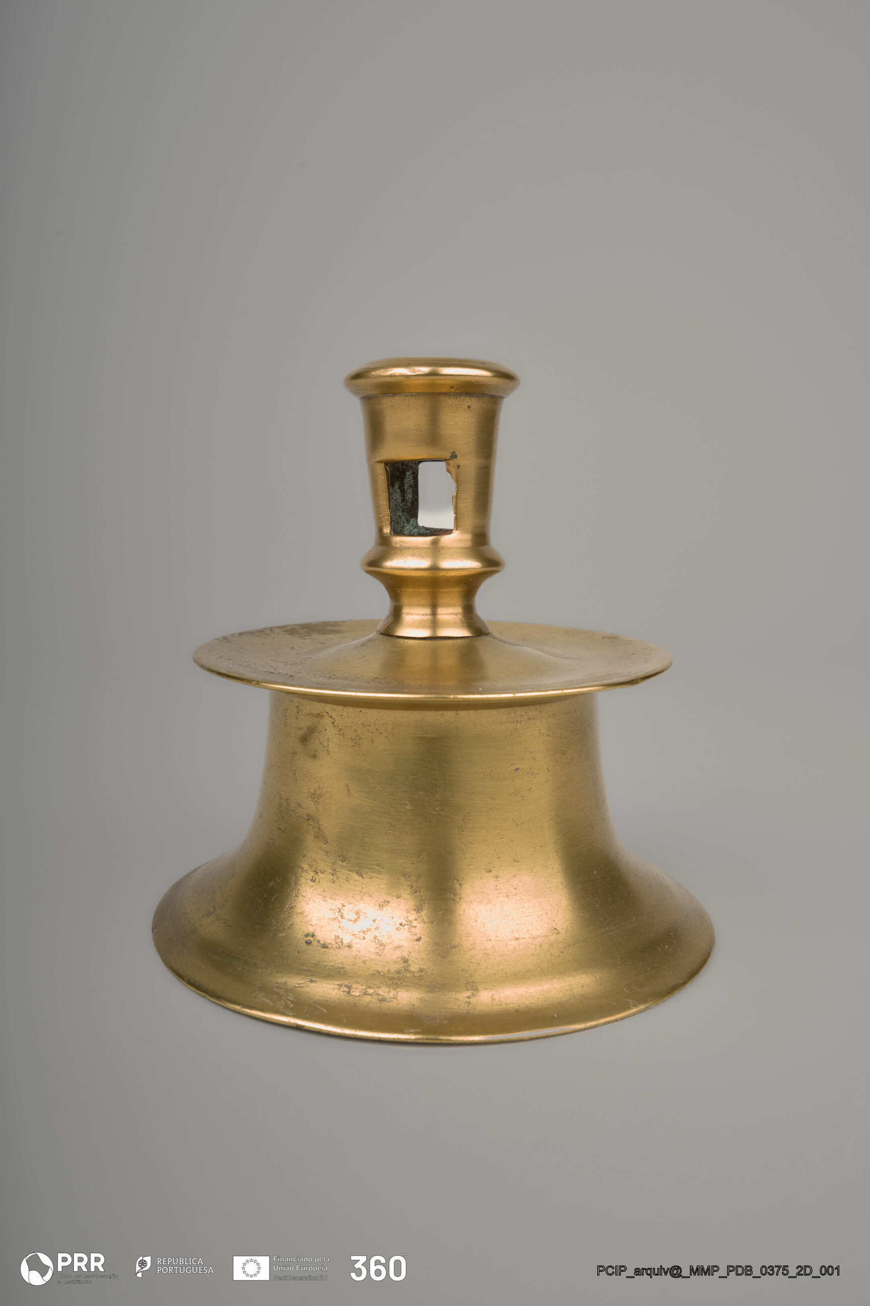 Matéria/Técnica: Desconhecida; Cronologia: Século XVII; Autoria: Desconhecida; Dimensões (cm): Altura: 11,5; Diâmetro: 2,1 Base - 11,7.