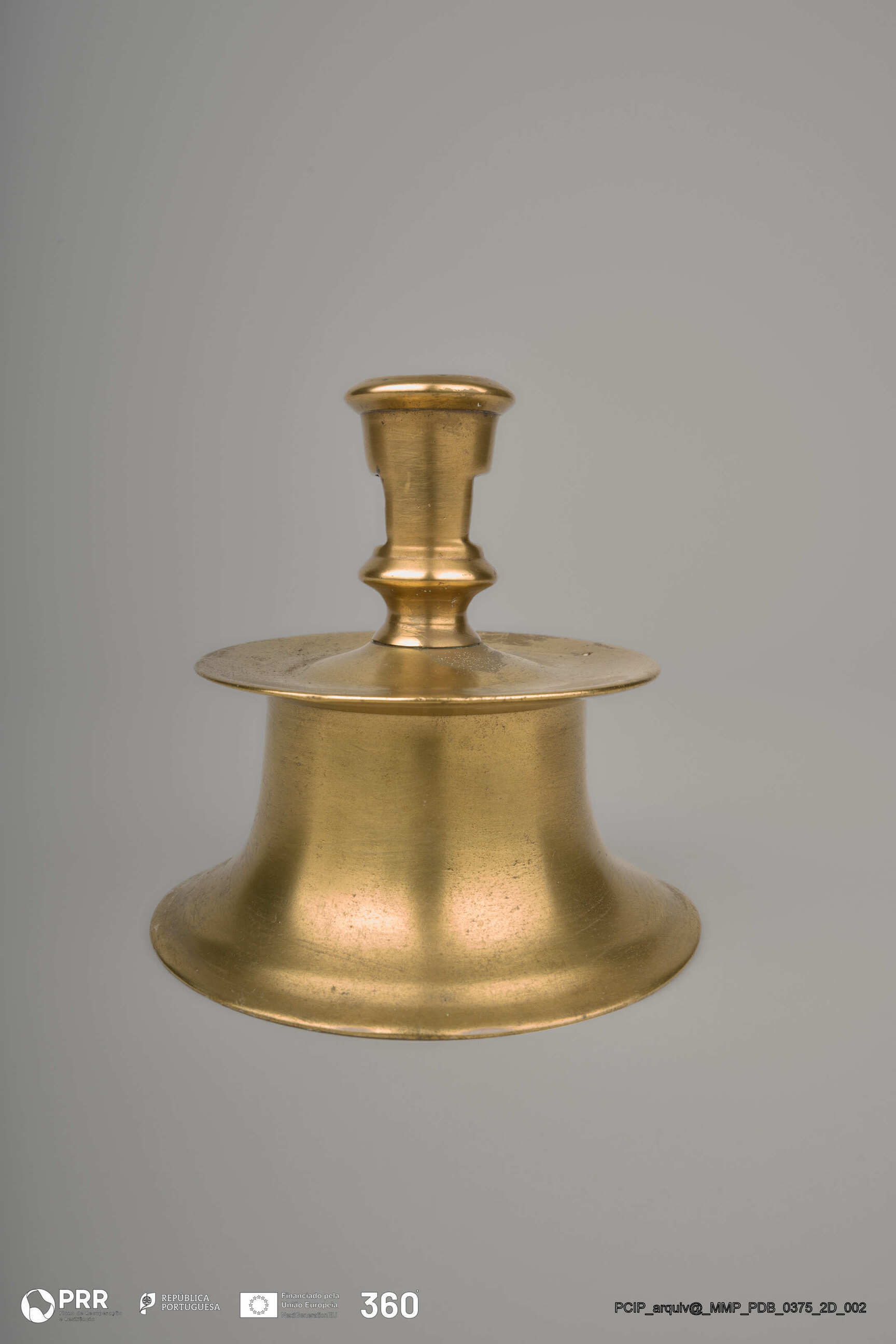 Matéria/Técnica: Desconhecida; Cronologia: Século XVII; Autoria: Desconhecida; Dimensões (cm): Altura: 11,5; Diâmetro: 2,1 Base - 11,7.