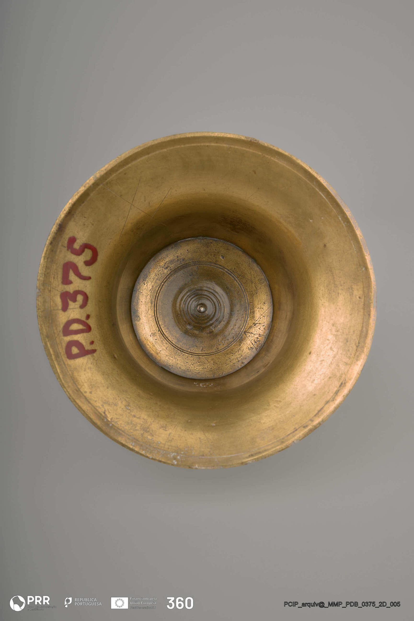 Matéria/Técnica: Desconhecida; Cronologia: Século XVII; Autoria: Desconhecida; Dimensões (cm): Altura: 11,5; Diâmetro: 2,1 Base - 11,7.