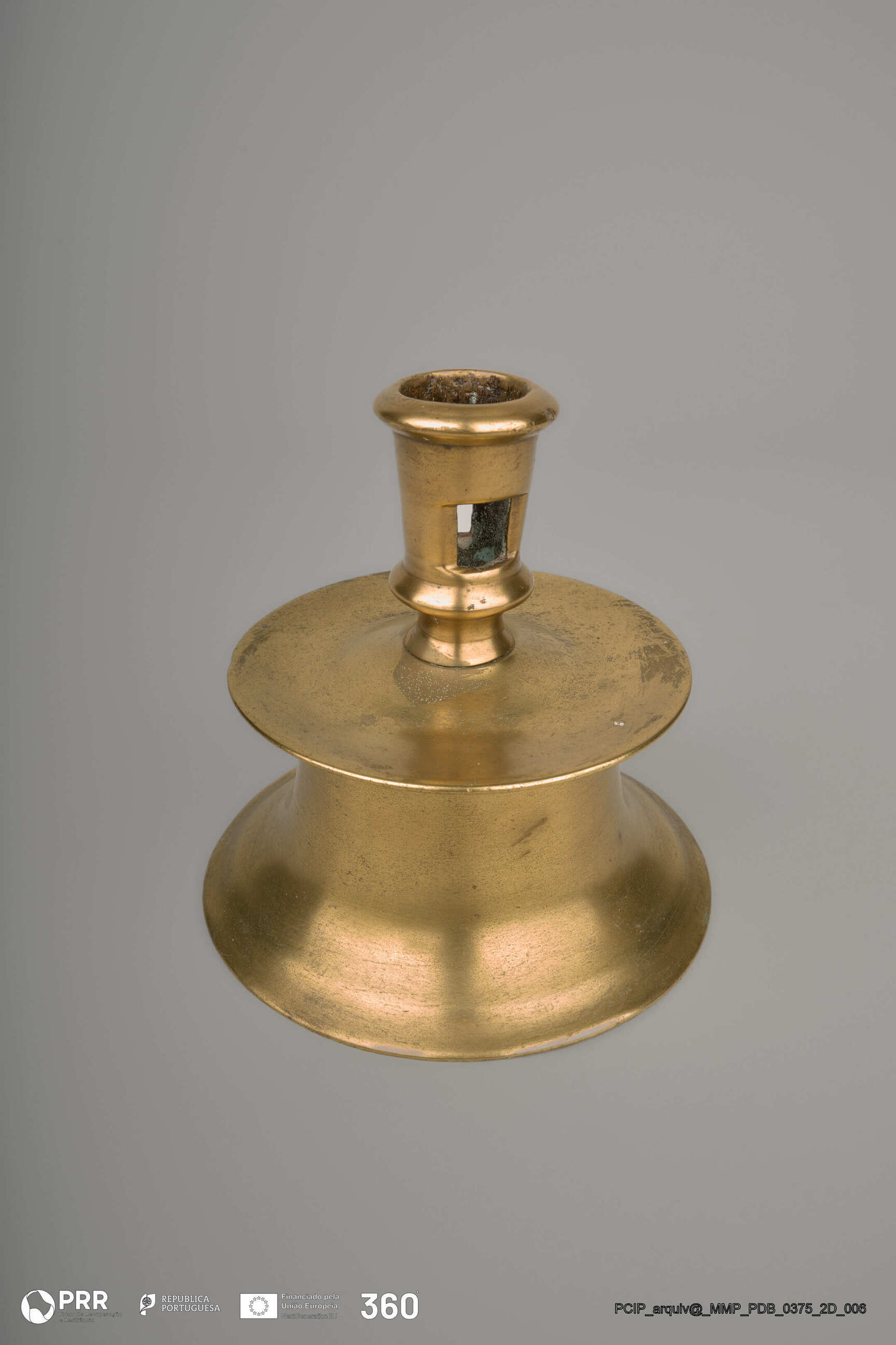 Matéria/Técnica: Desconhecida; Cronologia: Século XVII; Autoria: Desconhecida; Dimensões (cm): Altura: 11,5; Diâmetro: 2,1 Base - 11,7.