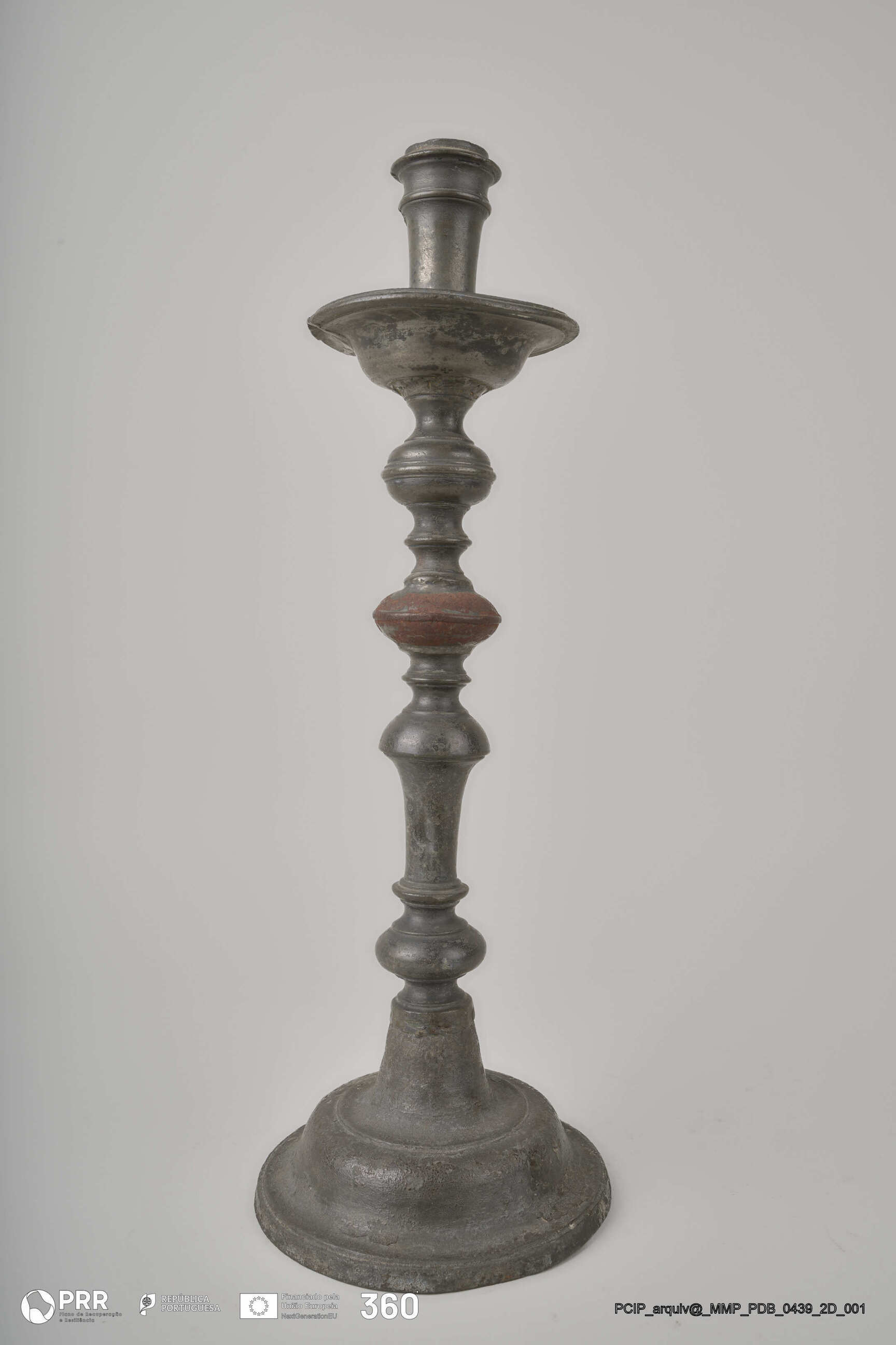 Matéria/Técnica: Desconhecida; Cronologia: Século XVII; Autoria: Desconhecida; Dimensões (cm): Altura: 38,5; Diâmetro: Base - 13,5 Vela - 2,8.