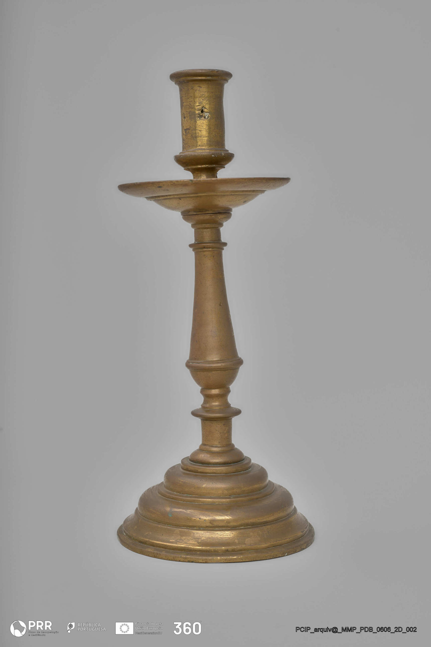 Matéria/Técnica: Desconhecida; Cronologia: Século XVII; Autoria: Desconhecida; Dimensões (cm): Altura: 27,5; Diâmetro: Base - 11,7.