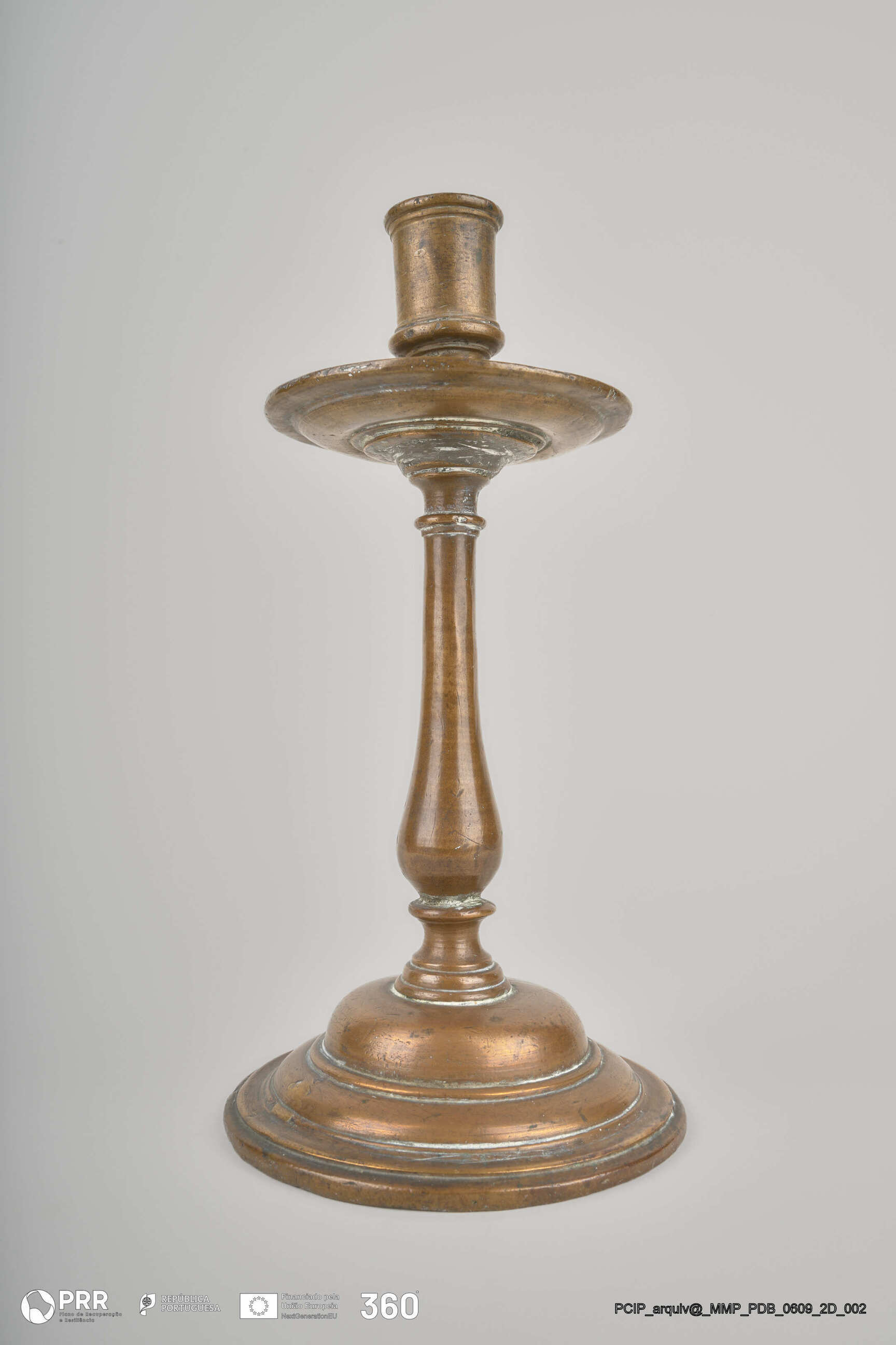 Matéria/Técnica: Desconhecida; Cronologia: Século XVII; Autoria: Desconhecida; Dimensões (cm): Altura: 25,5; Diâmetro: Base - 12,7.