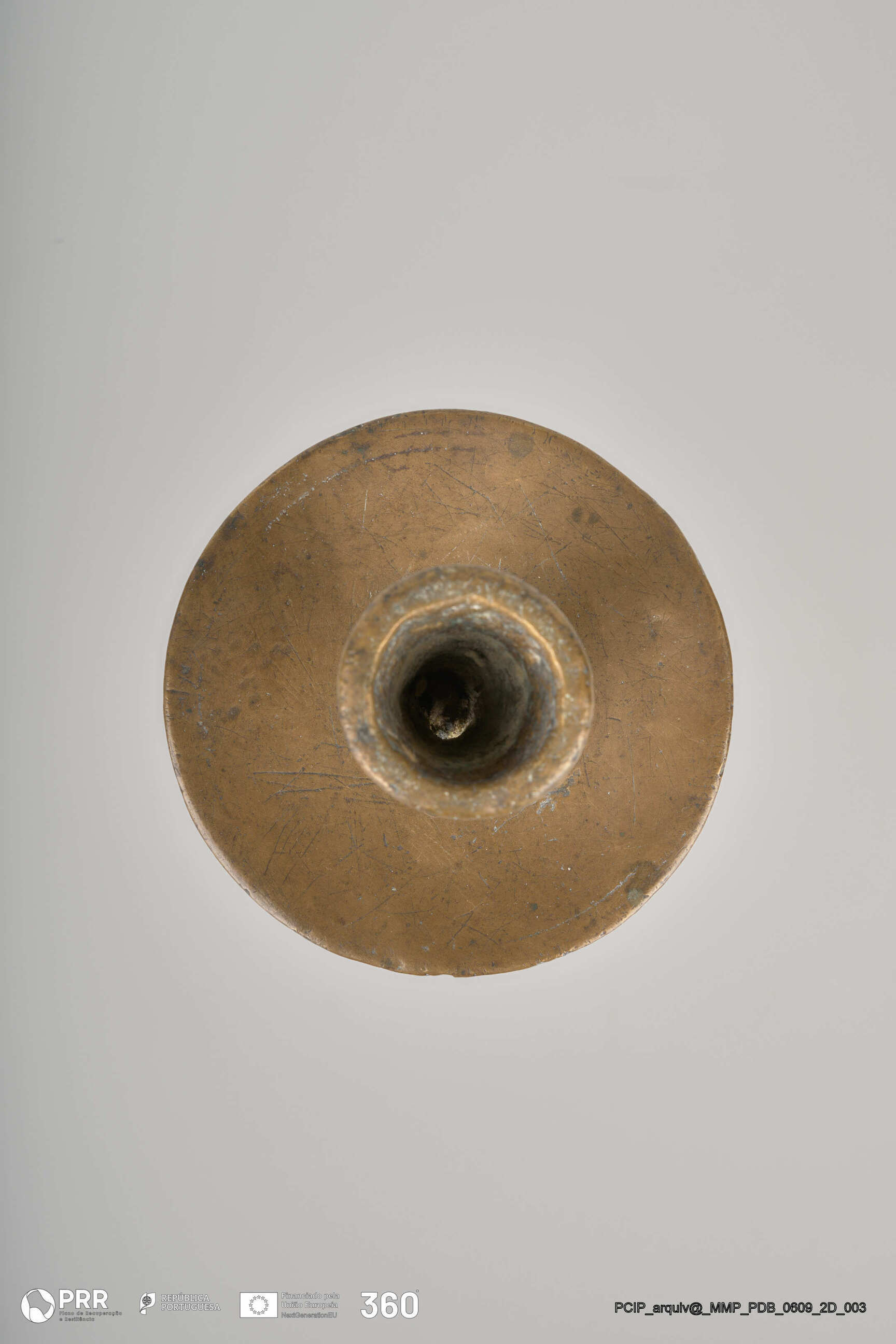 Matéria/Técnica: Desconhecida; Cronologia: Século XVII; Autoria: Desconhecida; Dimensões (cm): Altura: 25,5; Diâmetro: Base - 12,7.